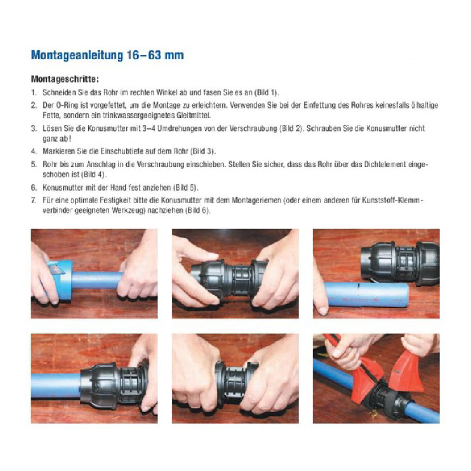 Diese Plastik Klemmverbinder für Plastik Rohre sind sofort einsatzbereit und können in allen Montagen in der Trinkwasserinstallation eingesetzt werden. Unsere PE Verschraubungen für Kunststoff Wasserleitungen und andere Plastik Formstücke können für die Bewässerung in der Bauindustrie zur Erweiterung eines bestehenden Rohrnetzes eingesetzt werden. Unsere Plastik Klemmverbinder für Plastik Wasserleitungsrohre bieten für Wasserinstallation das beste für die Wasserinstallation und werden auch in der Industrie und im Sanitärtechnikbereich zur Erweiterung bestehender Wasserwirtschaft verwendet. Preisgünstige Plaste Klemmverbinder für Plaste Rohre kaufen Sie direkt im Grosshandel bei namhaften Markenherstellern. Bei Stabilo-Sanitaer können Sie Plaste Klemmverbinder für Plastik Rohre direkt einfach und schnell online bestellen und zum besten Preis-Leistungs-Verhältnis kaufen.