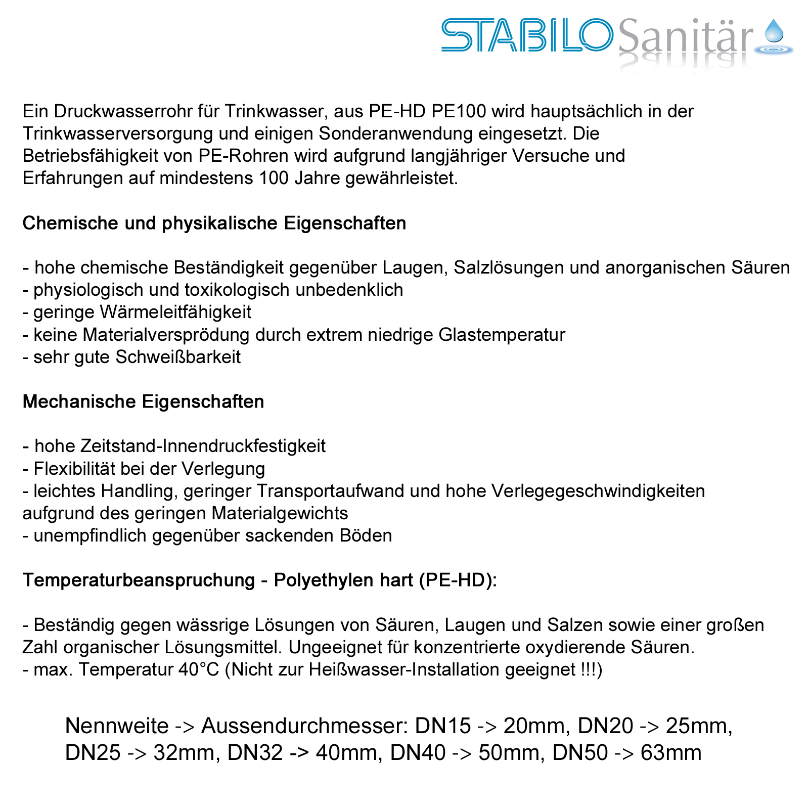- Stabilo-Sanitaer PE HD Rohr PE100 PN16 25m 3/4 Zoll 25mm Trinkwasserleitung
