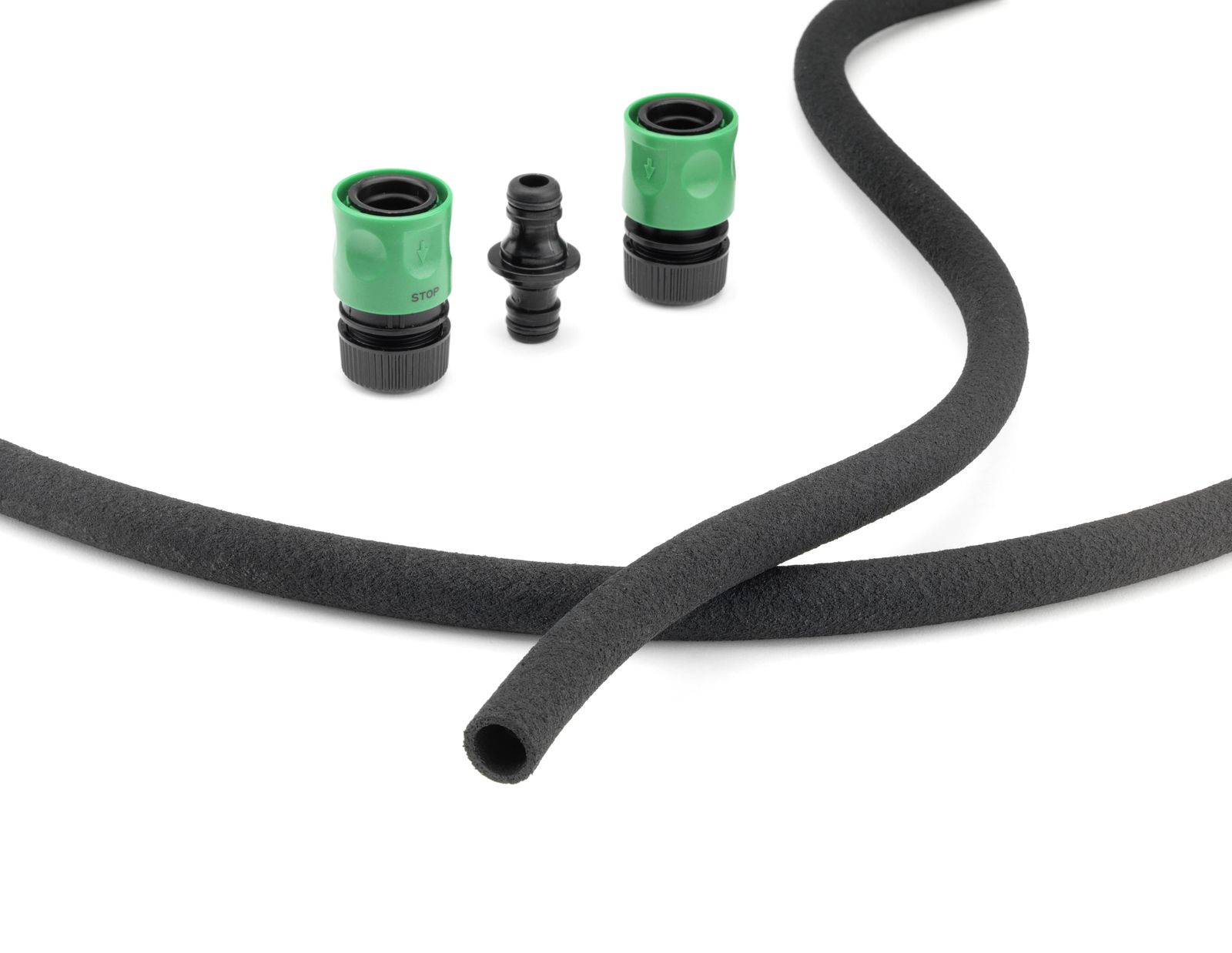Der aus recyceltem Gummigranulat hergestellte Perlschlauch eignet sich besonders gut zur unterirdischen Nutzung, kann aber auch oberflächlich verwendet werden, allerdings ist der Schlauch für Festinstallationen vorgesehen und nicht für die tägliche manuelle Bewässerung geeignet.