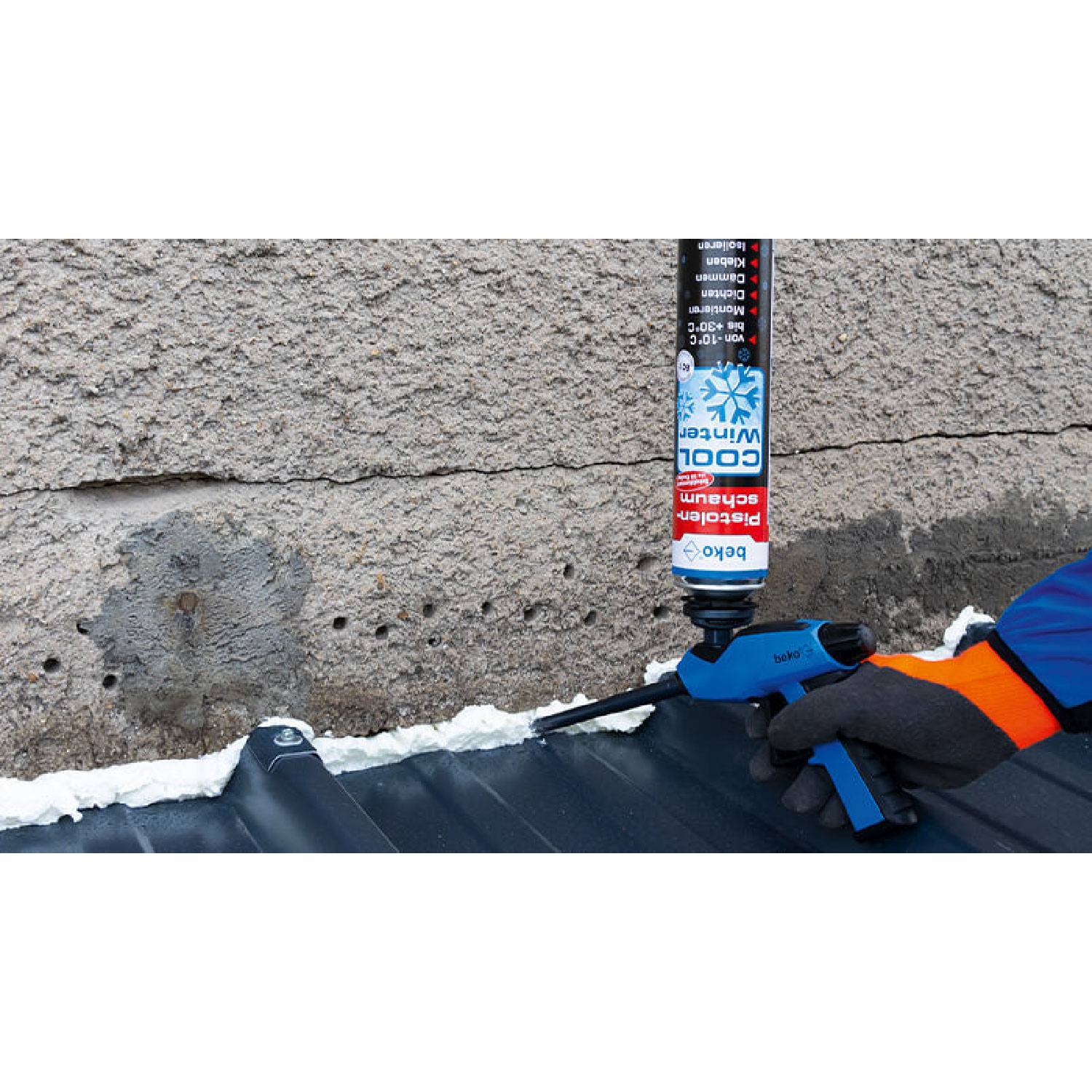 Der angefeuchtete Untergrund muss sauber, fettfrei und tragfähig sein. Die Dose ca. 20-mal kräftig schütteln. Danach beko Cool Winterschaum gleichmäßig auftragen. Auf eine ausreichende Befeuchtung des Unter- grundes und ggf. nachträgliches Besprühen des frischen Schaumes ist zu achten! Bei mehreren Schaumsträngen muss zwischengefeuchtet werden. Verarbeitungshinweise auf der Dose beachten!