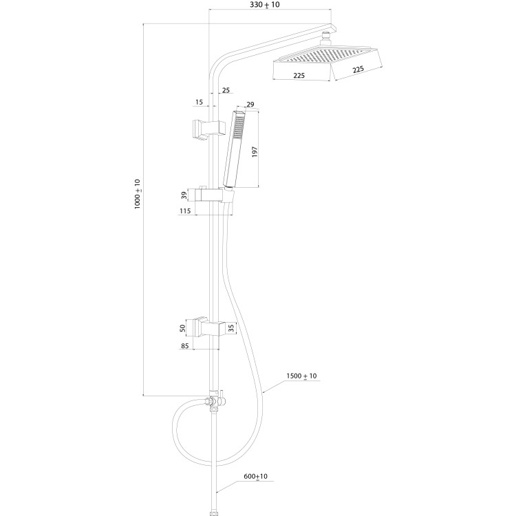 Höhe der Duschsäule: 100 cm