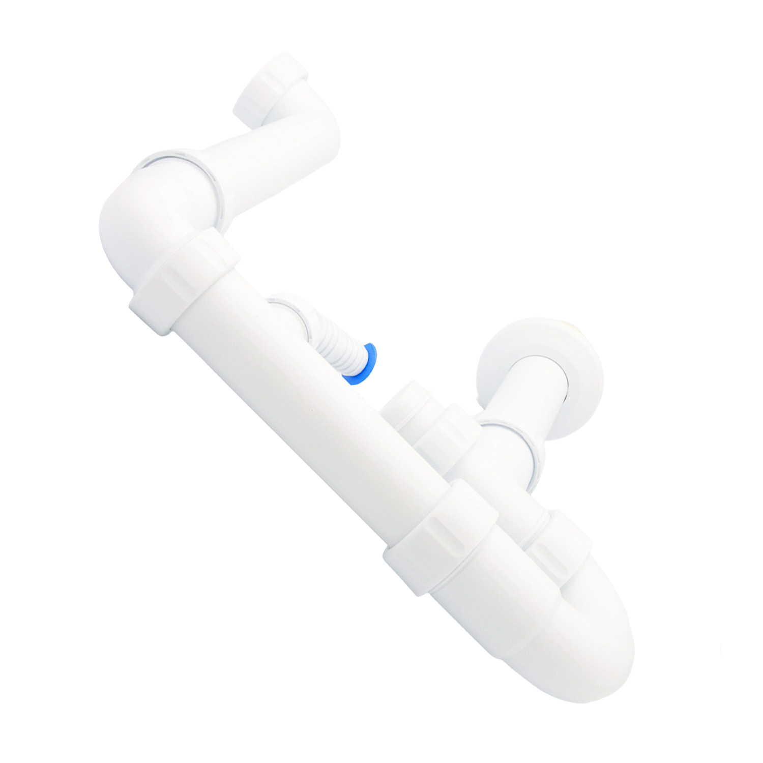 PP‑Raumsparsiphon 1½" / 1¼" mit Geräteanschluss & Reinigungsöffnung