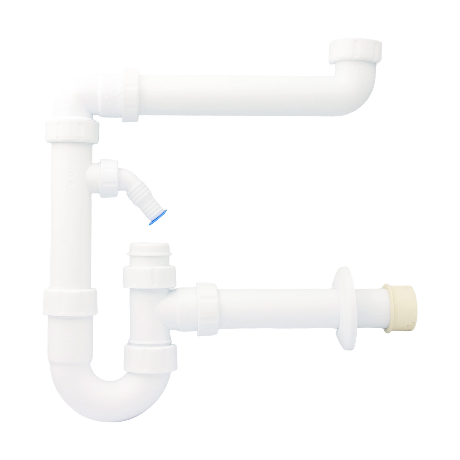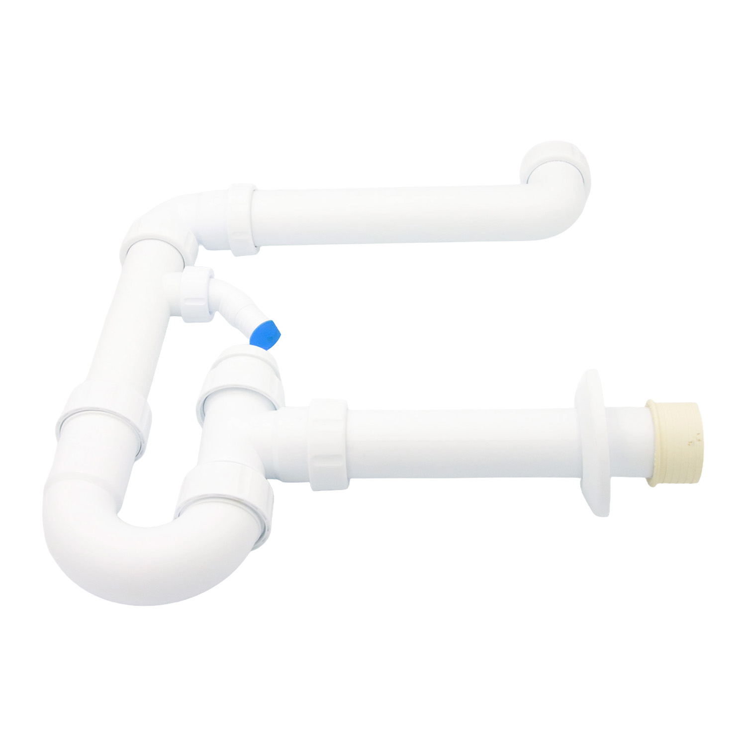 PP?Raumsparsiphon 1½" / 1¼" mit Geräteanschluss & Reinigungsöffnung