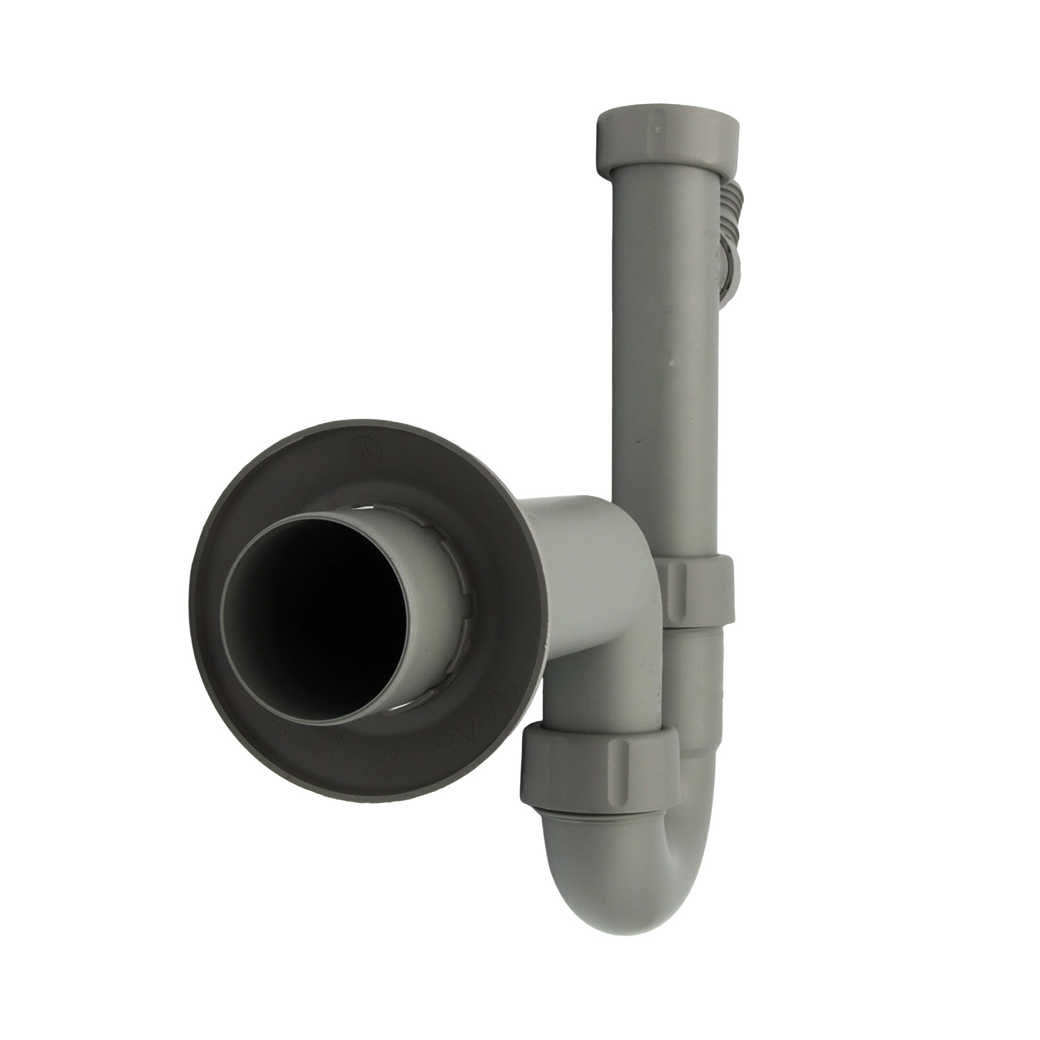 Besonders praktisch ist der integrierte Kombi?Geräteanschluss 3/4" (19?mm) auf 1" (23?mm), der den Anschluss von Haushaltsgeräten wie Wasch- oder Spülmaschinen ermöglicht. Der Siphon wird komplett mit allen Dichtungen geliefert und entspricht der DIN EN 274, was geprüfte Qualität und zuverlässige Funktion garantiert. Die graue Farbgebung fügt sich dezent in jede Umgebung ein.