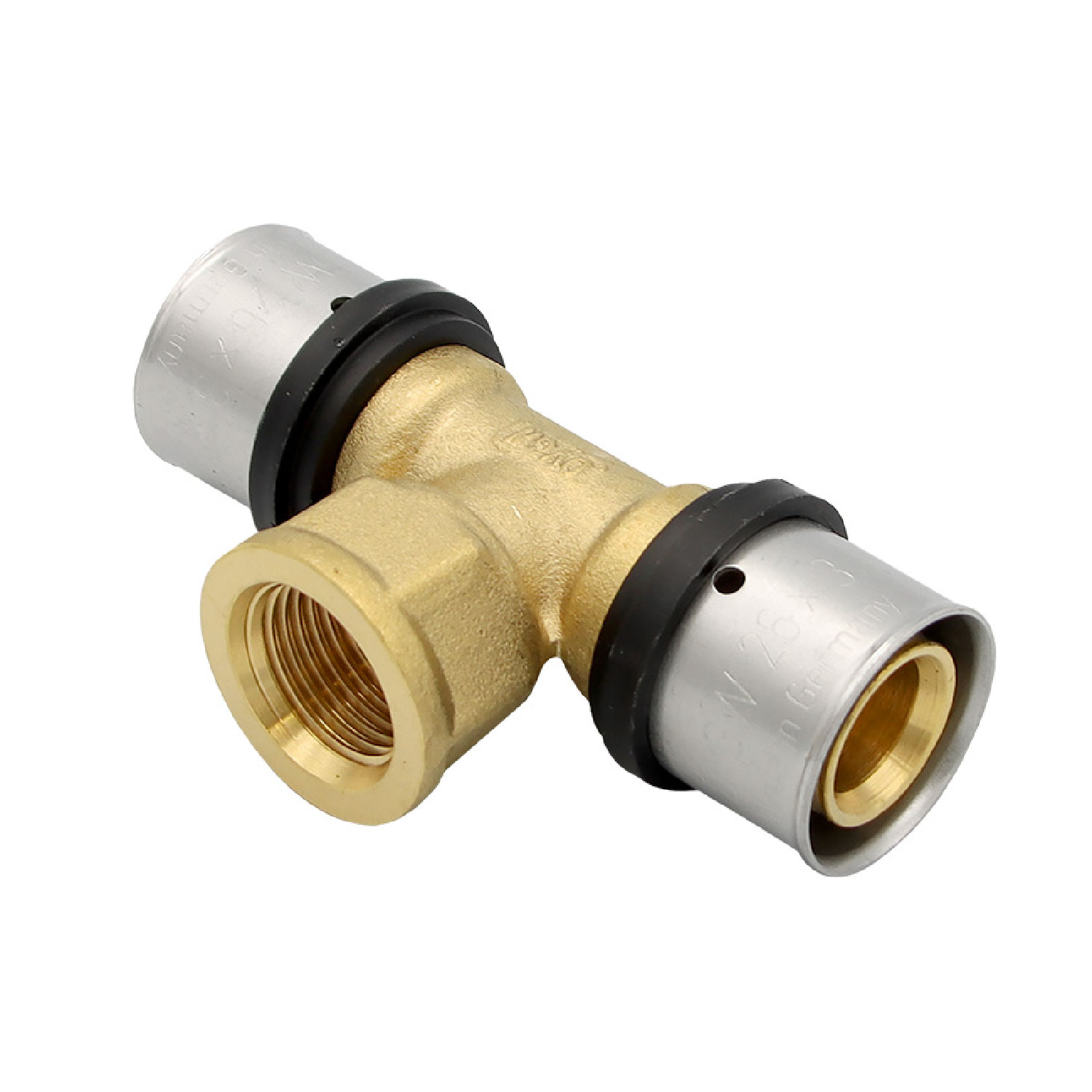 Pressfitting T-Stück 26x3 1/2 Zoll 26x3 mm IG TH Kontur Verbundrohr