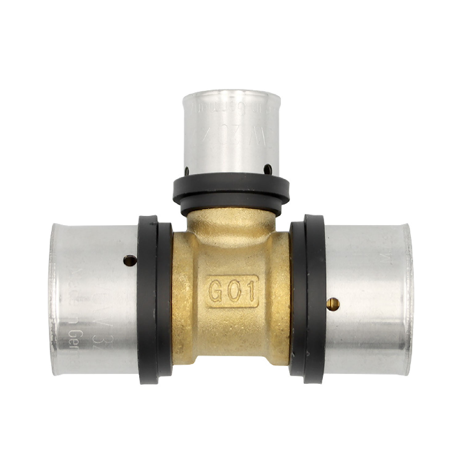 Pressfitting T-Stück 32x3 20x2 32x3 mm TH Kontur Alu-Verbundrohr