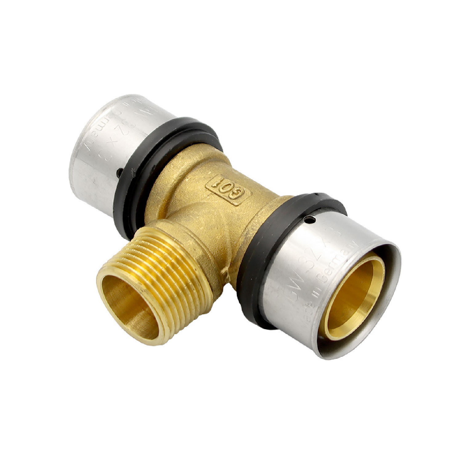 Pipetec Pressfitting T-Stück 32x3 3/4 Zoll 32x3 mm Aussengewinde AG TH Kontur Alu-Verbundrohr