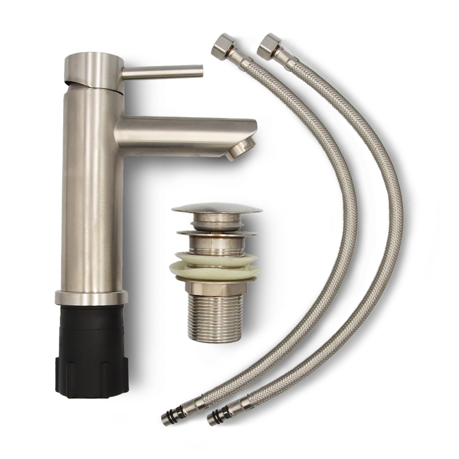 Dank der kompakten Bauhöhe eignet sich die Armatur ideal für Standard-Waschtische und fügt sich nahtlos in jedes stilvolle Badezimmer ein. Mitgeliefert werden Flexschläuche sowie ein praktischer Klick-Klack-Ablauf für eine einfache Installation.