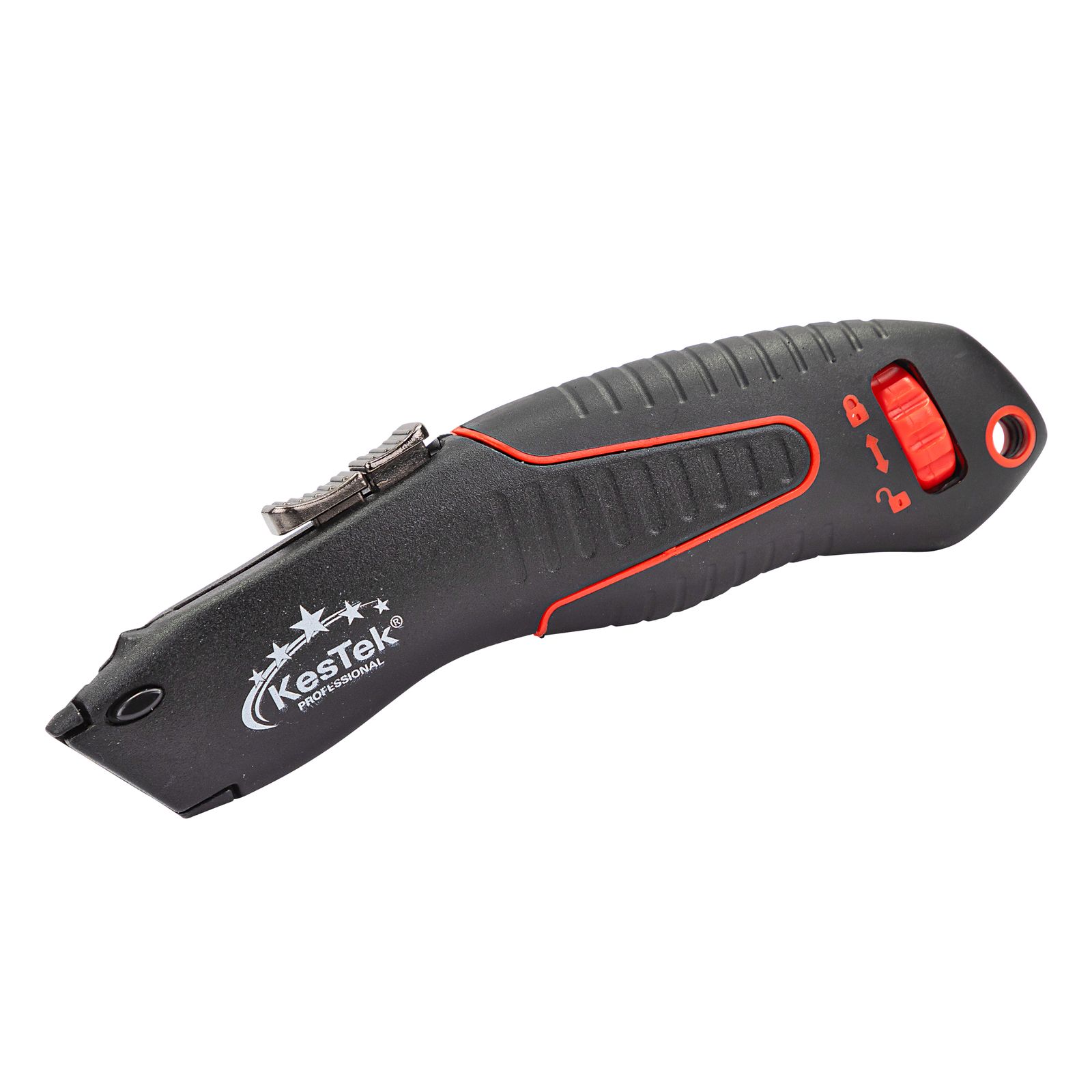 Unser Bestseller für den Profi-Handwerker ist mit einer schwarzen SK2 Trapezklinge ausgestattet und hat eine Klingenbreite von 60mm und eine Dicke von 0,6mm. Der ergonomisch geformte Griff aus Aluminium mit Kunststoffauflagen liegt sehr komfortabel und sicher in der Hand. Sie können das Profi-Cutter als Sicherheitsmesser verwenden, indem Sie die Klinge mit dem vorderen Schieber betätigen. Die Klinge wird durch eine Federspannung im Griff festgehalten und durch Freigabe des vorderen Schiebers automatisch zurückgezogen. Verwenden Sie den zweiten Schieber, können Sie die Klinge in zwei feste Positionen ausfahren. Durch das eingebaute Feststellrad ist eine permanente Fixierung der Klinge in jeder Position möglich. Perfekt geeignet für den professionellen oder privaten Einsatz.