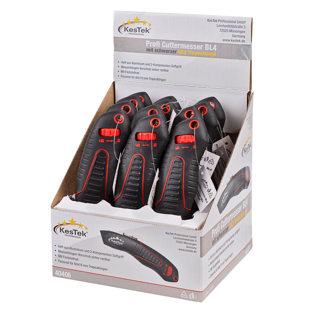 Profi Cuttermesser BL4 mit schwarzer SK2 Trapezklinge Display