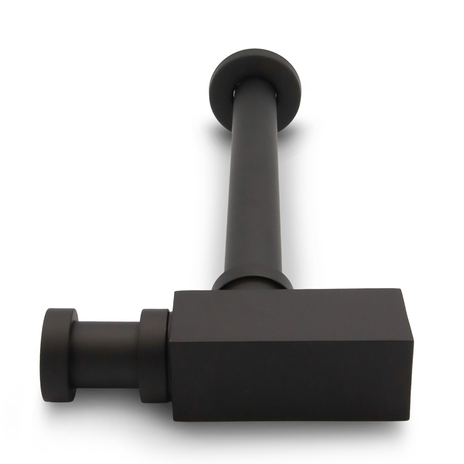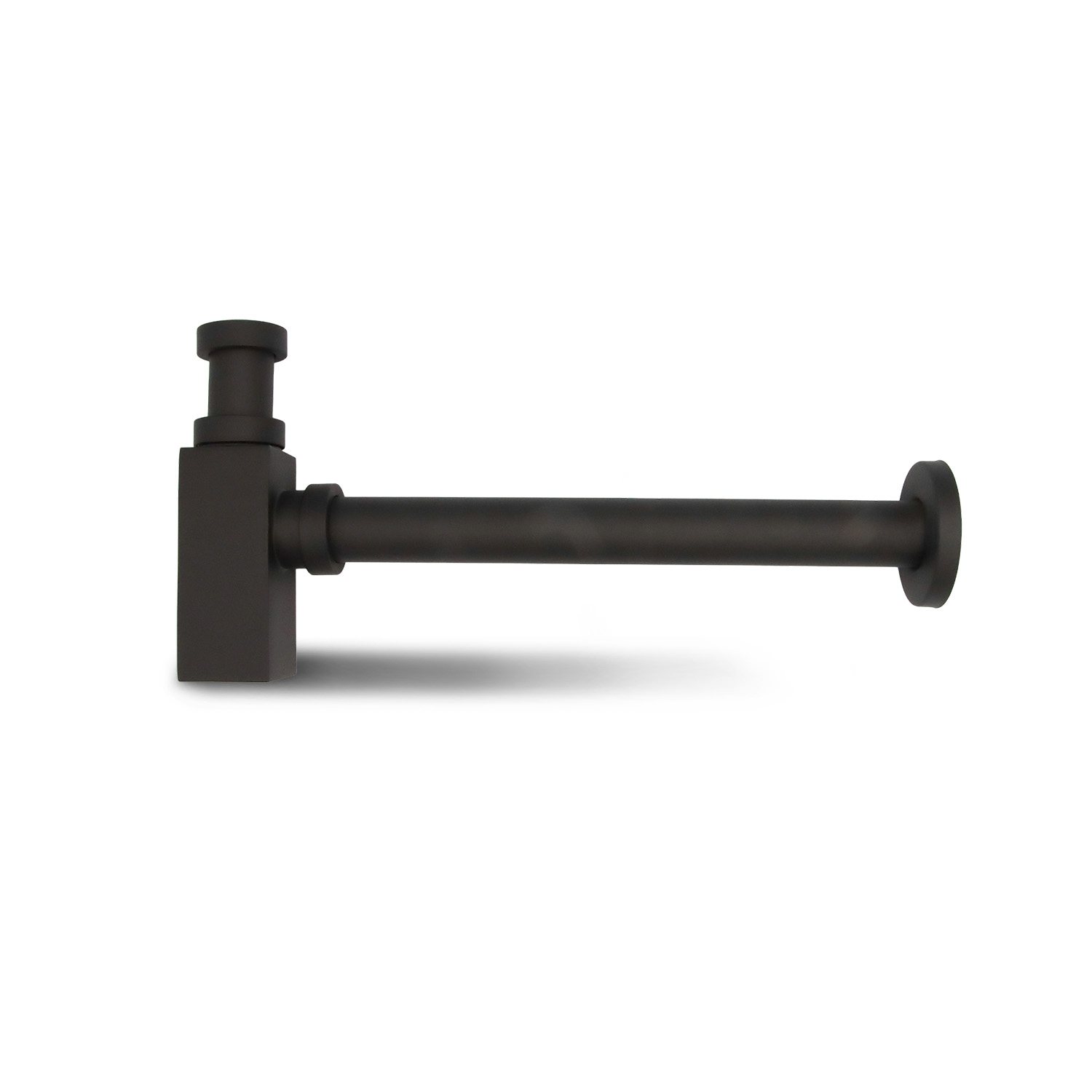 Quadratischer Siphon in mattem Schwarz ist die ideale Wahl für moderne Waschbecken mit sichtbarem Ablauf.