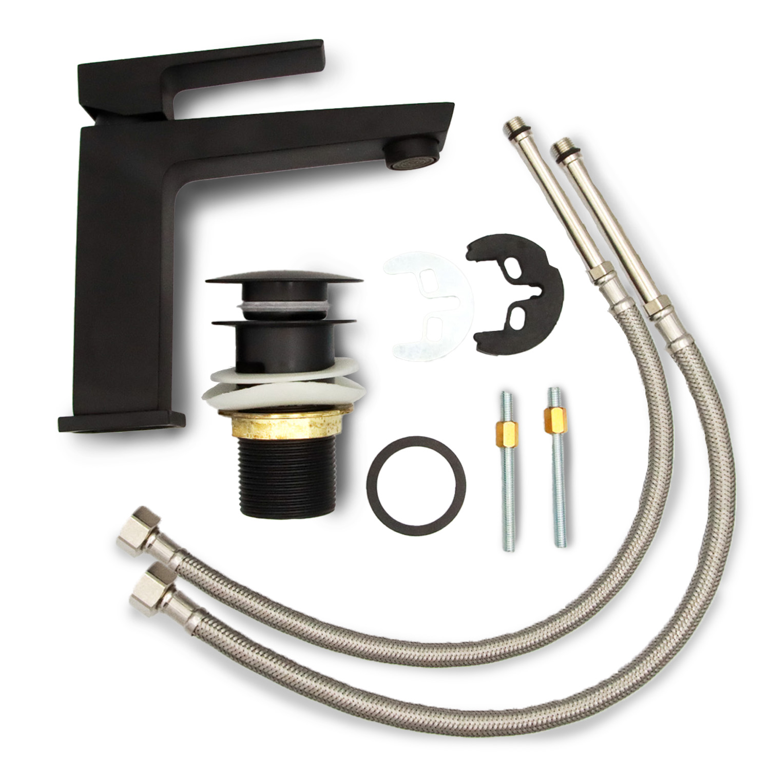 Die kompakte Bauhöhe passt gut auf gängige Waschtische und lässt ausreichend Platz am Becken. Für den schnellen Einbau sind die Klick-Klack-Ablaufgarnitur, 3/8" Flexschläuche mit 40 cm Länge und der Standardanschluss G3/8" dabei. So gelingt die Montage sicher und ohne Zusatzteile.