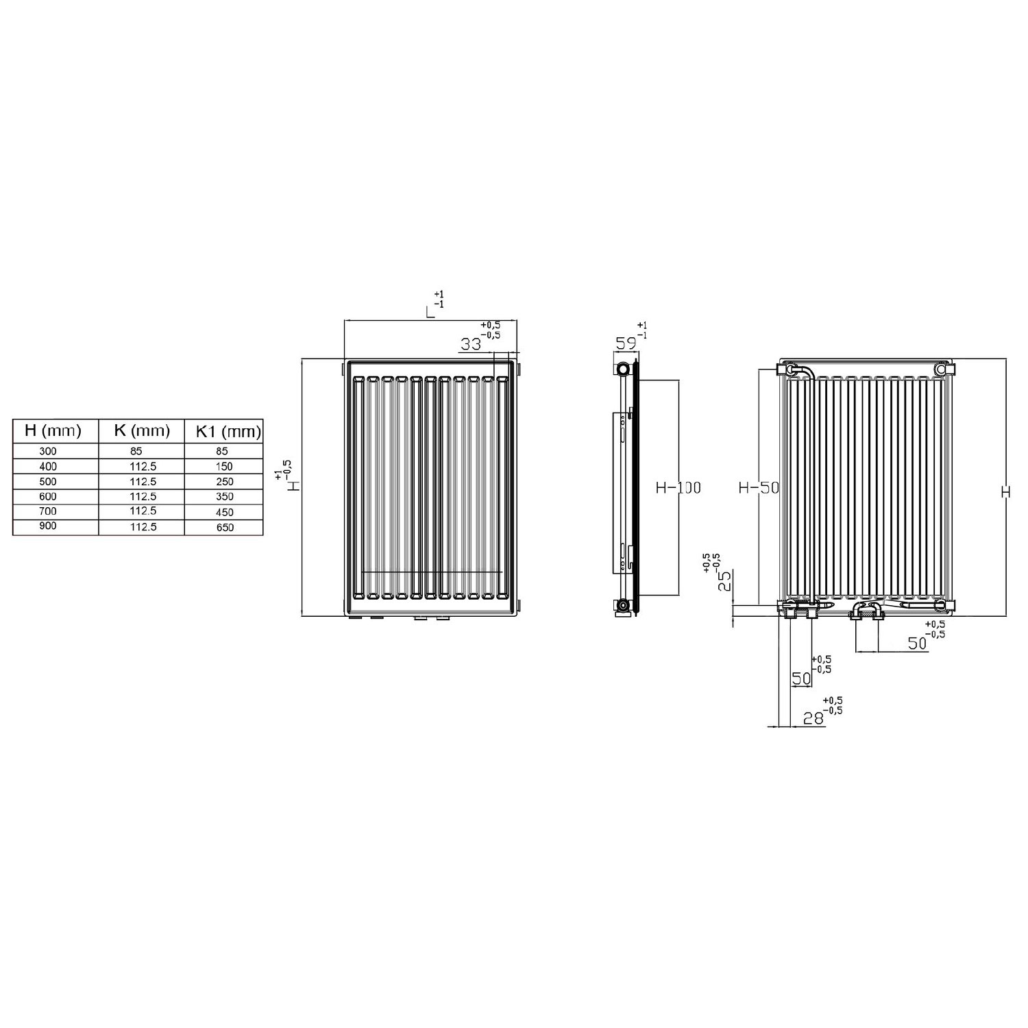 Sanicomfort Universal-Flachheizkörper Typ 10 BH 500 BL 500-1200 mm