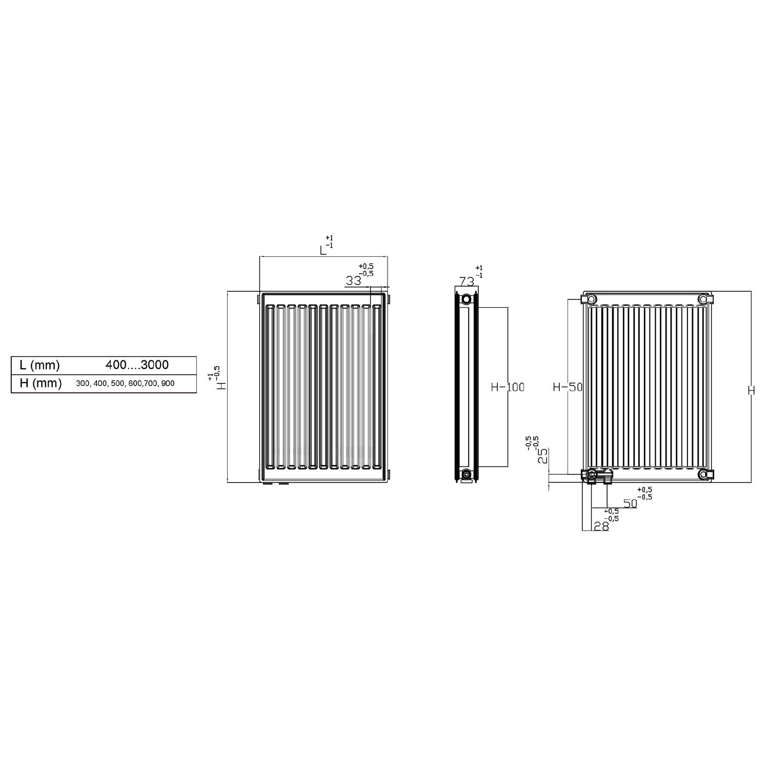 Sanicomfort Universal-Flachheizkörper Typ 10 BH 300 BL 600-1200mm