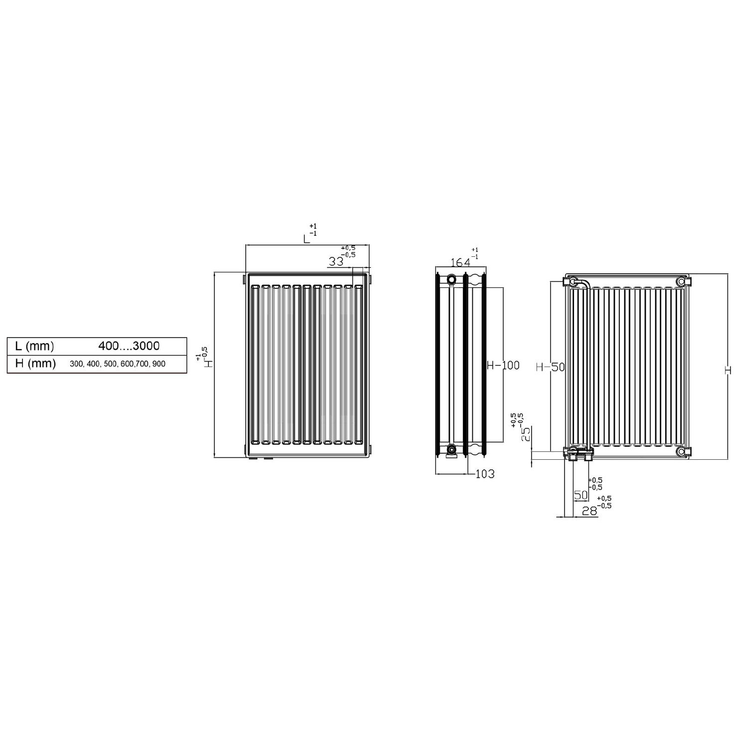 Sanicomfort Universal-Flachheizkörper Typ 33 3K BH 300 BL 1400-2300 mm