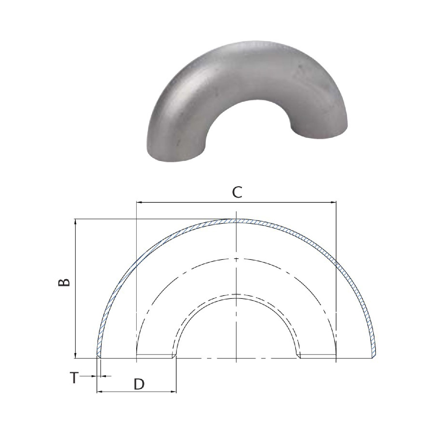 - Nennweite: DN100 - Rohrgrösse: 4 Zoll - Rohrwinkel: 180 Grad - kurze Ausführung