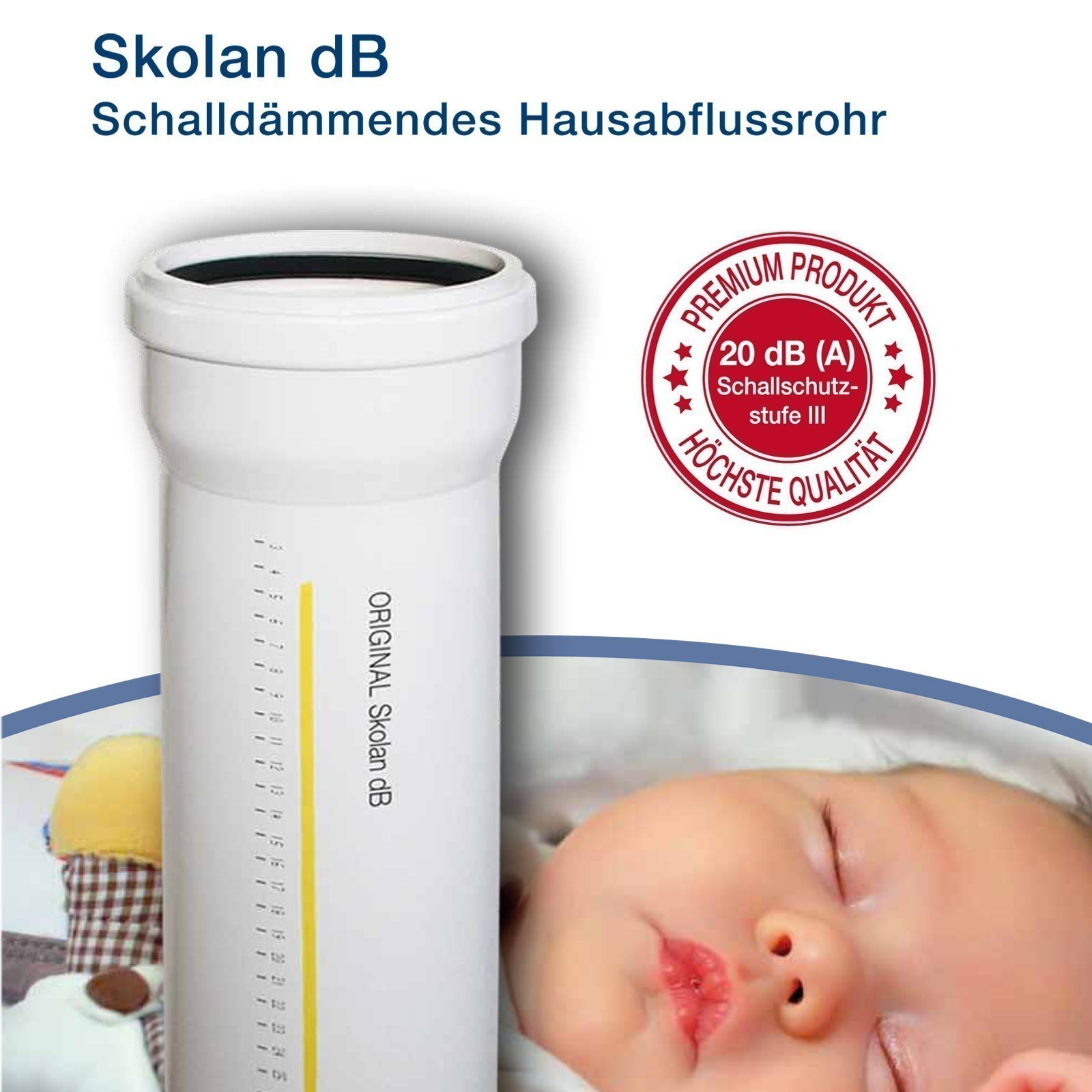 Das Skolan dB Safe ist ein dickwandiges Schallschutzrohrsystem das nachweislich Luft- und Körperschall reduziert. Dickwandige Abwasserrohrsysteme wie z.B. Skolan dB Safe haben sich in der Praxis bewährt. Die Verlegung bei Skolan dB Safe erfolgt mit handelsüblichen Rohrschellen das einen Schallschutz von 20dB(A) erreichen. Das Skolan dB Safe wurde beim Fraunhofer Institut für Bauphysik auf Schallschutz nach DIN EN 14366 überprüft.