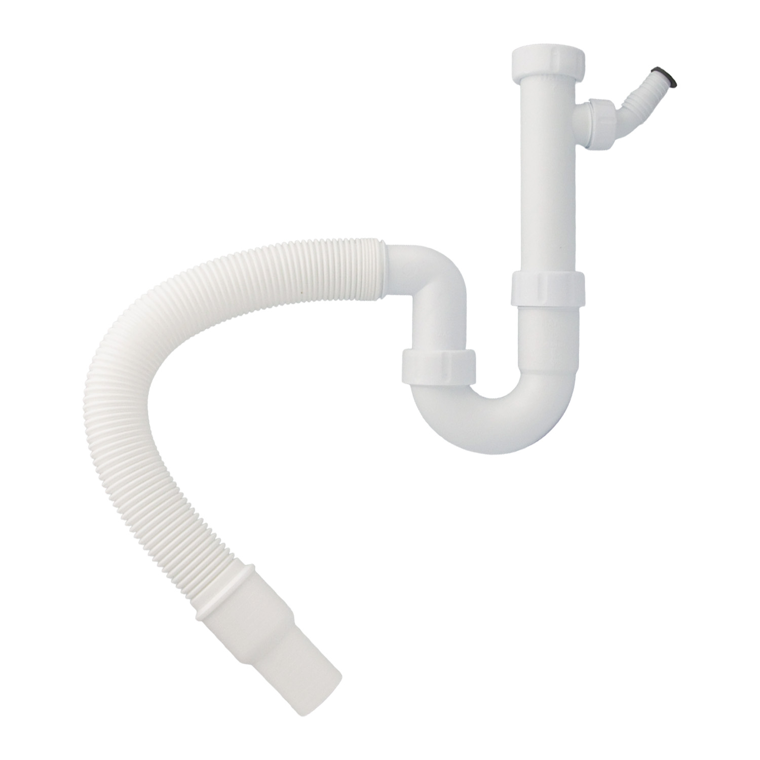 Dieses Röhrensiphon mit flexiblem Ablaufschlauch eignet sich ideal als Abflusslösung für Spülen mit einem 1½"-Ablaufanschluss. Dank der Universal?Ausführung für DN 40/50 lässt sich das Siphon problemlos in gängige Abwasserleitungen integrieren. Der flexible Ablaufschlauch kann bei Bedarf gekürzt werden und ermöglicht dadurch eine besonders einfache Anpassung an unterschiedliche Einbausituationen – ideal bei engen Platzverhältnissen oder bestehenden Installationen. Durch das höhenverstellbare Tauchrohr kann das Siphon zusätzlich optimal auf die Montagehöhe abgestimmt werden. Ein integrierter Kombi?Geräteanschluss 3/4" auf 1" erlaubt den direkten Anschluss eines Haushaltsgeräts wie Waschmaschine oder Spülmaschine. Somit dient das Siphon gleichzeitig als Abfluss für die Spüle und als Geräteanschluss, eine platzsparende und praktische Lösung für Küchen und Hauswirtschaftsräume. Das Röhrensiphon wird komplett mit allen benötigten Dichtungen geliefert