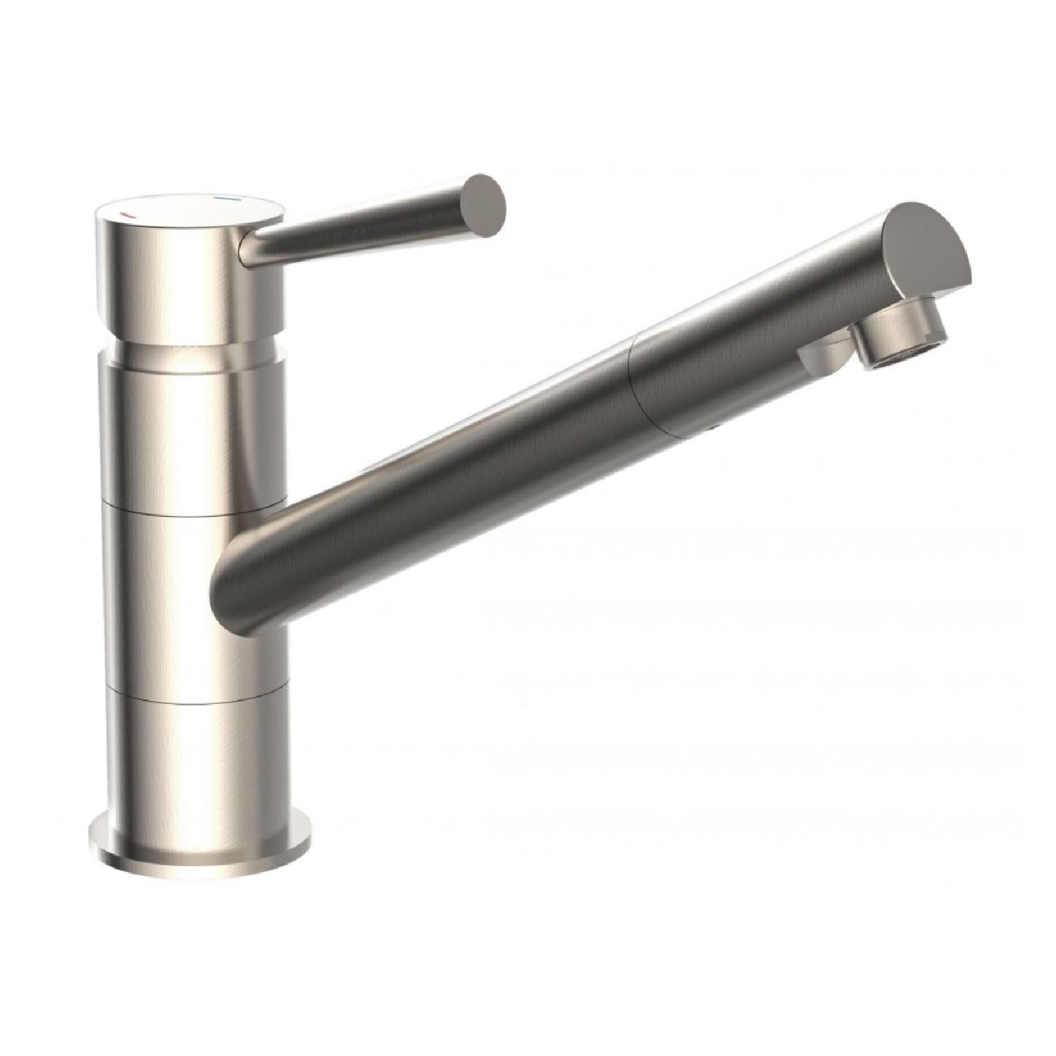 Spültischarmatur CORNWALL Edelstahloptik Wasserhahn mit drehbaren Auslauf und 150° Schwenkbereich