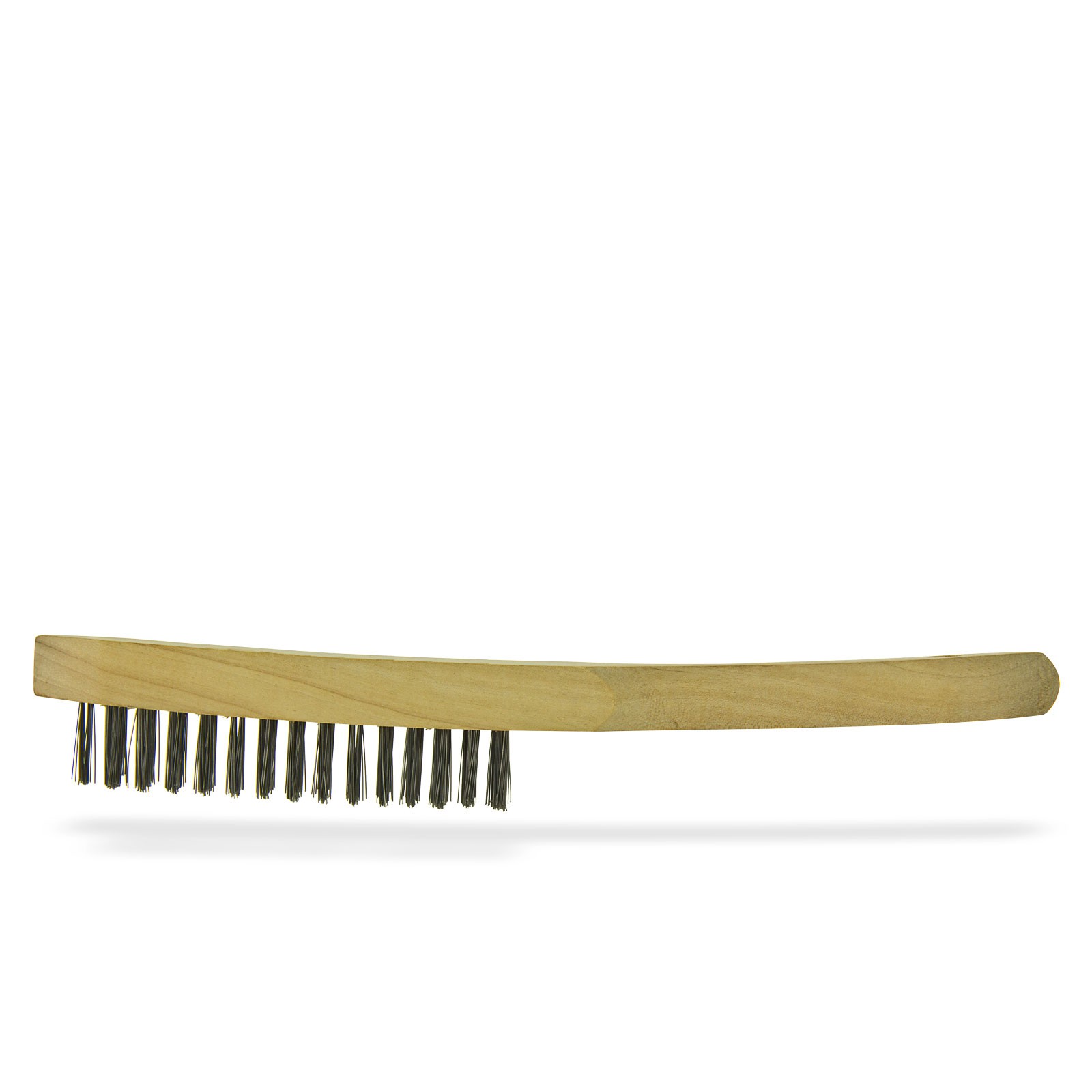Stahldrahtbürste / Drahtbürste 3-reihig mit geschweiftem Holzgriff