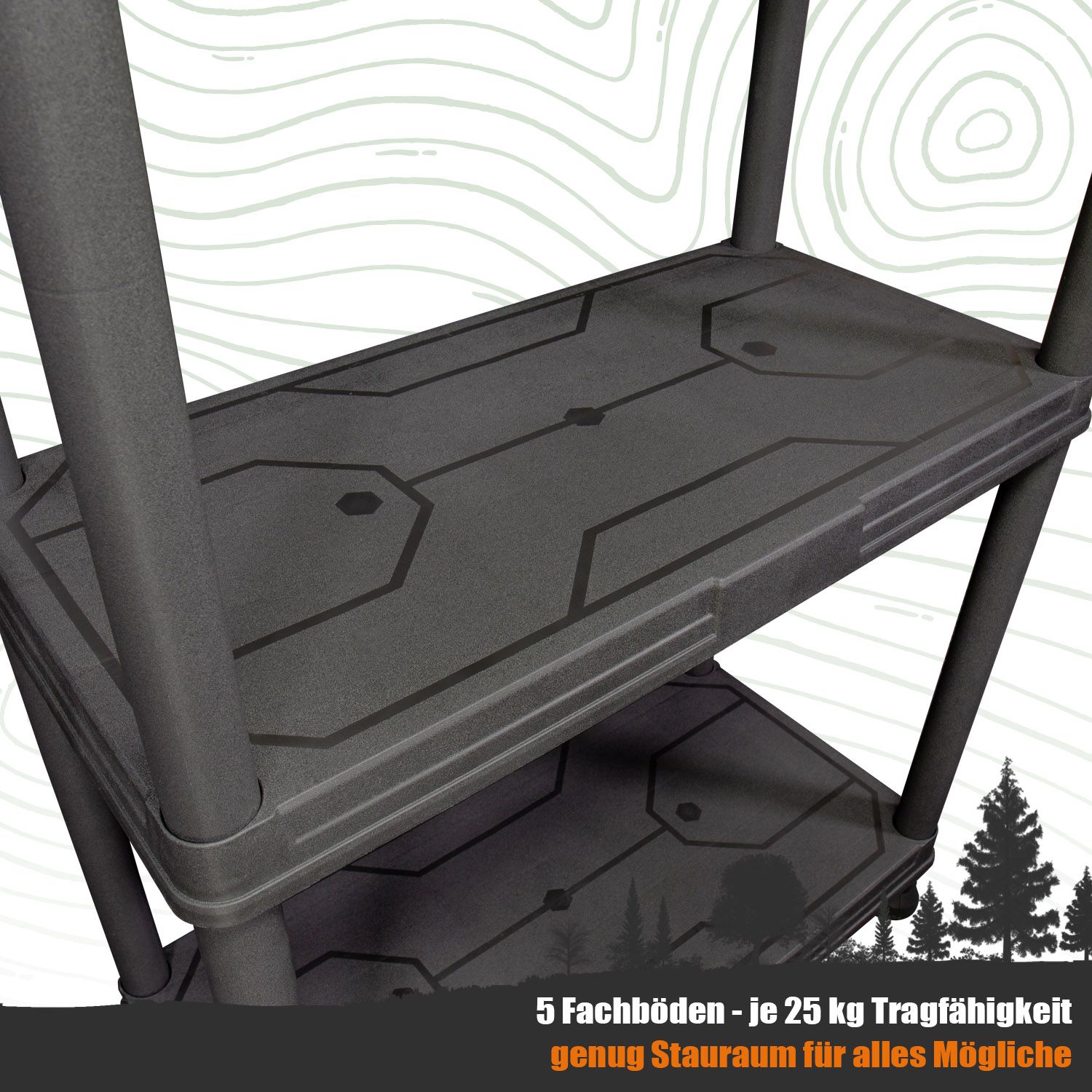 • 125 kg Traglast gesamt 25 kg pro Fachboden