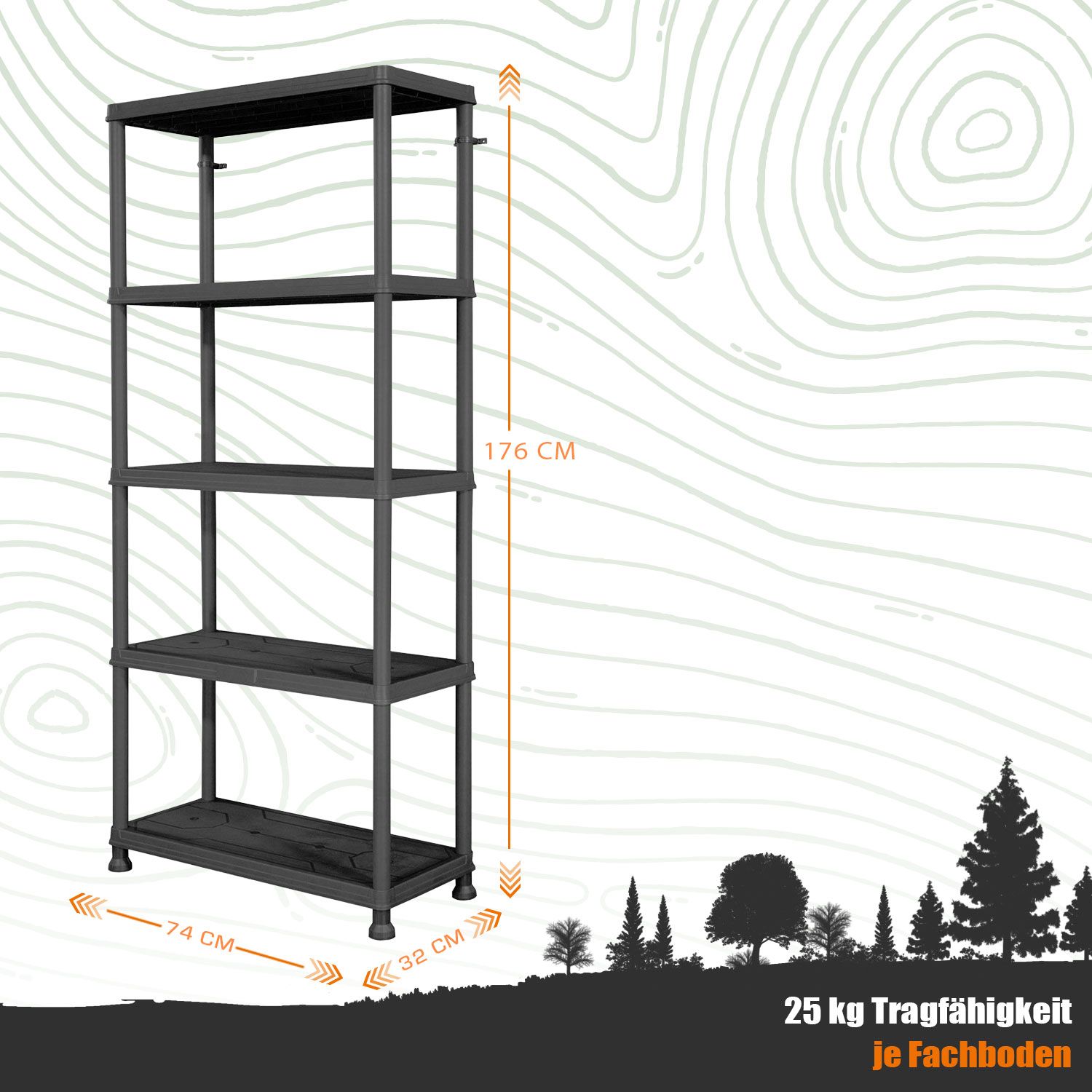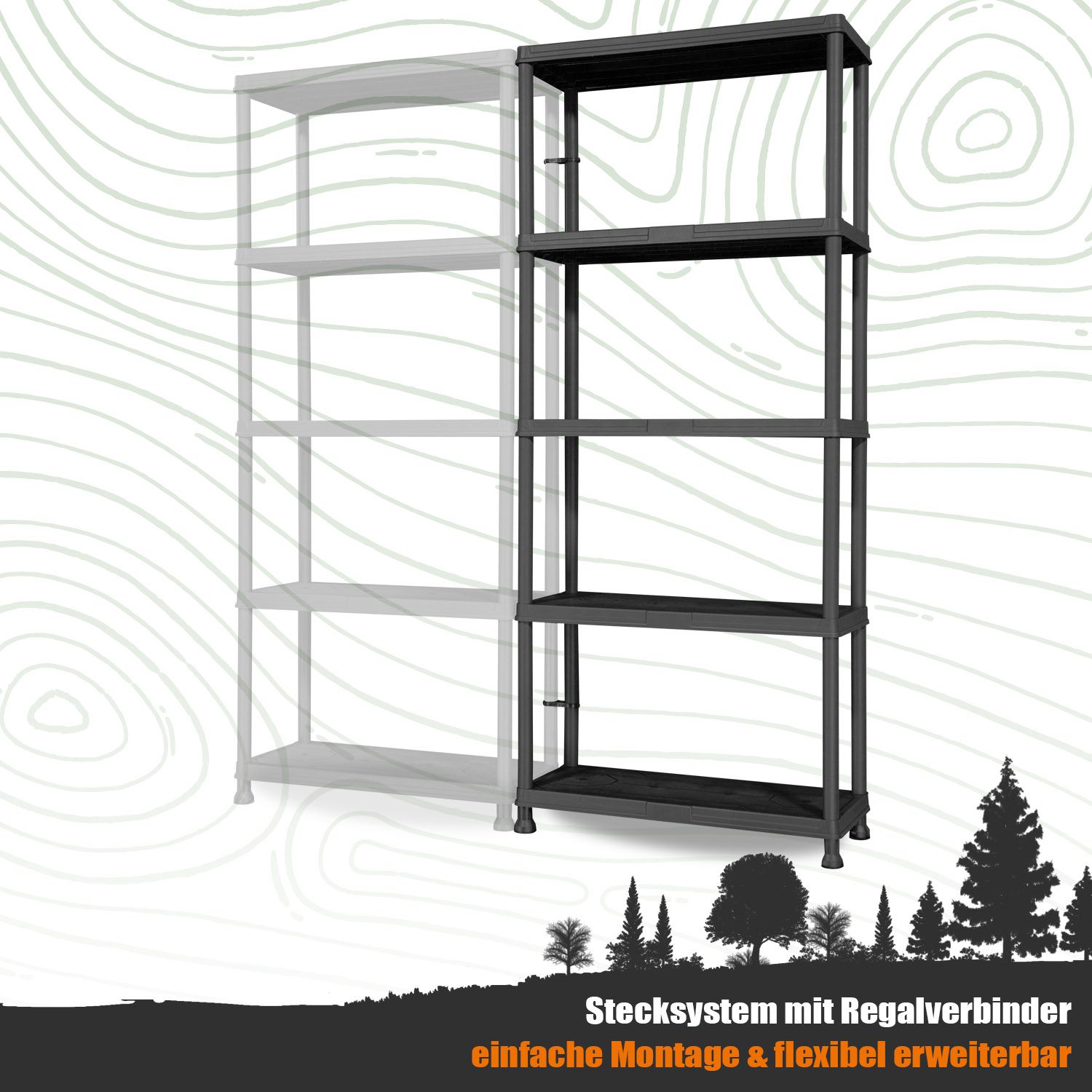 Steckregal aus Kunststoff mit 5 Böden 176 cm hoch