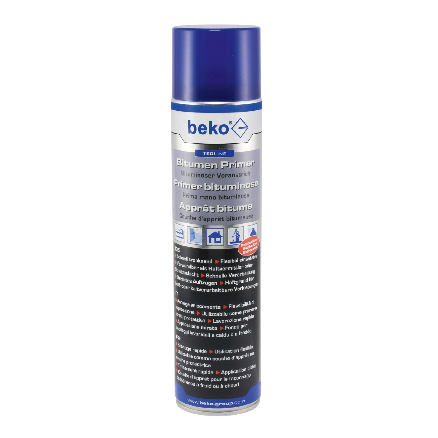 TecLine Bitumen Primer von beko ist ein Sprühbarer Bituminöser Voranstrich, der als Haftvermittler oder Schutzschicht verwendet werden kann und flexibel als Haftgrund für heiß- oder kaltverarbeitbare Verklebungen dient
