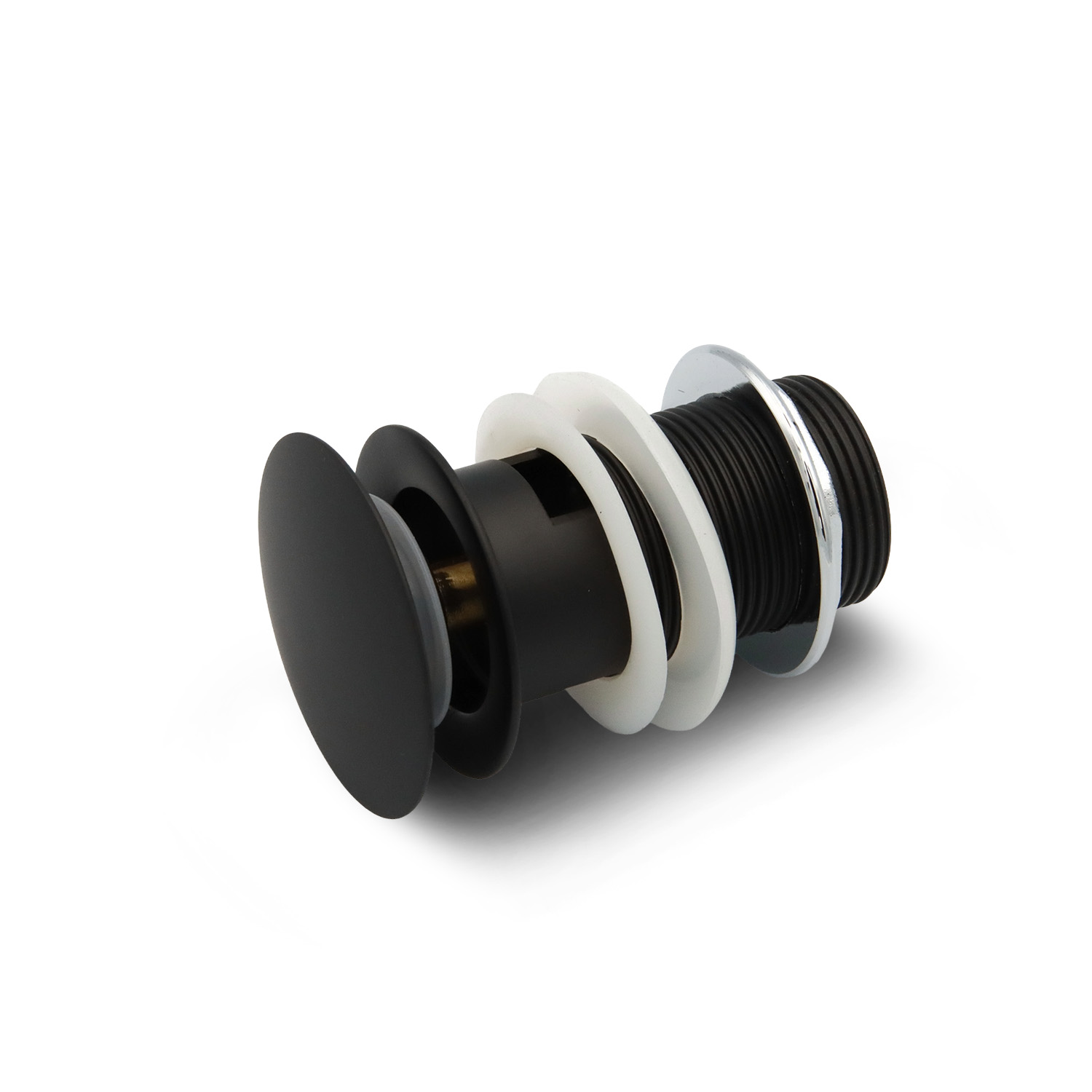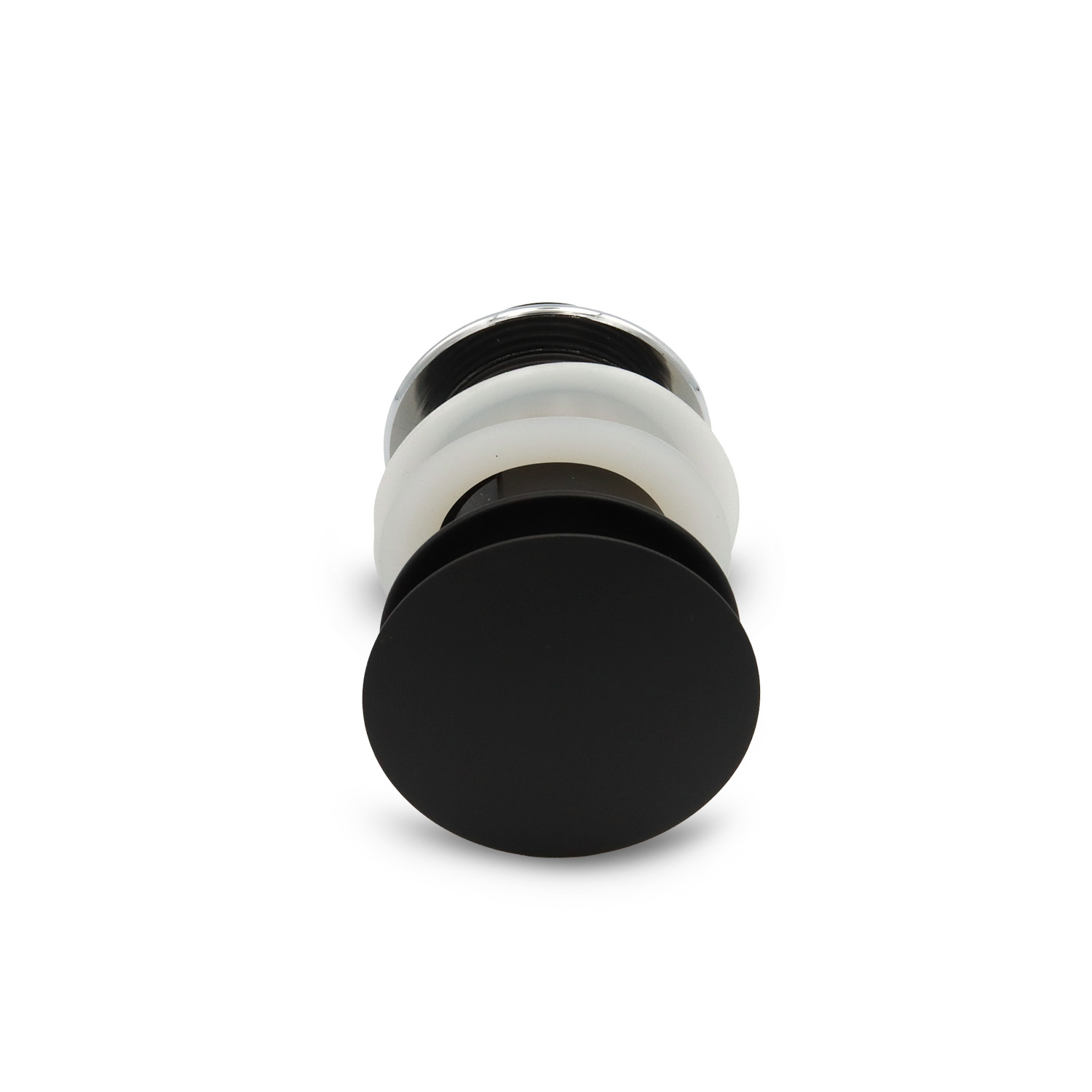 Die universelle Ablaufgarnitur in runder Form mit Klick-Klack Funktion in mattem Schwarz ist die perfekte Ergänzung für moderne Waschbecken.
