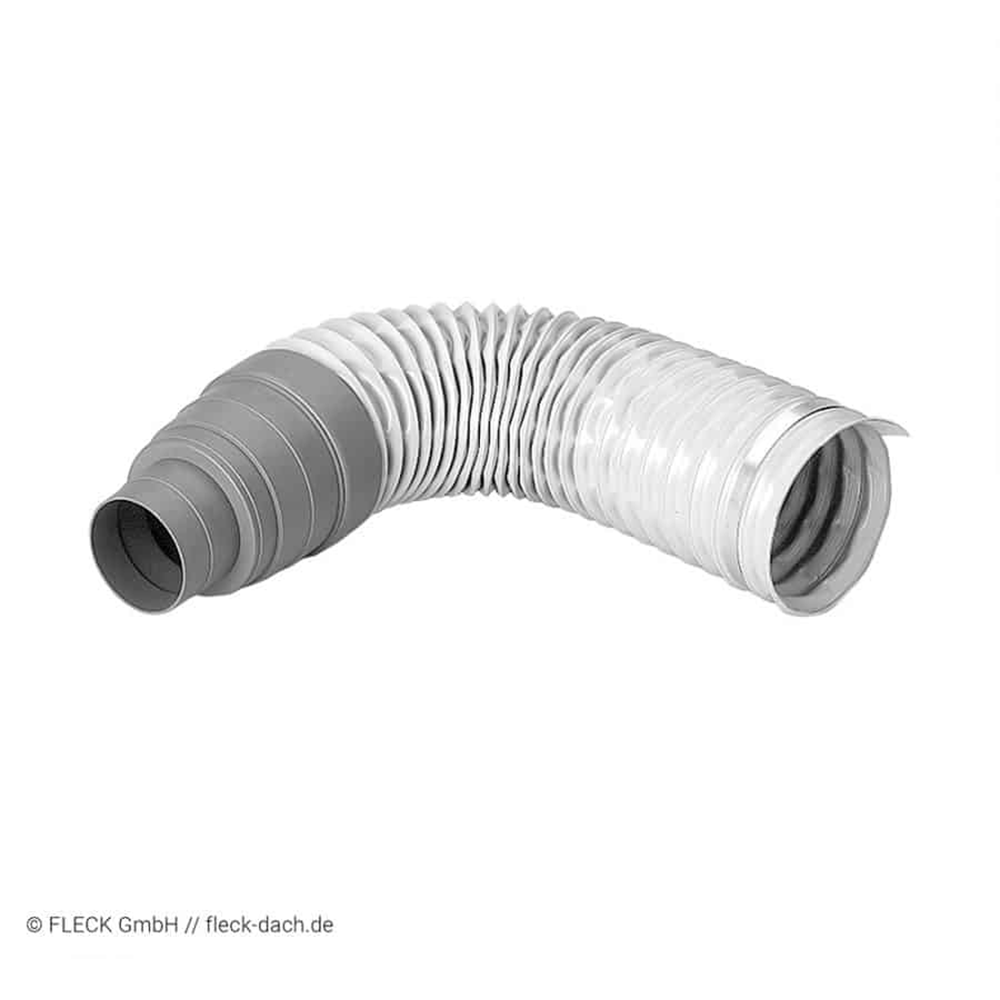Flexibel und universellDer flexible Universalschlauch DN125 von Fleck ist die ideale Verbindungslösung für Lüftungsanschlüsse auf Steildächern. Er ist ideal für den Einsatz innen oder unter dem Dach und ersetzt starr verlegte Rohre, die oft unpraktisch und schwer zu montieren sind.
