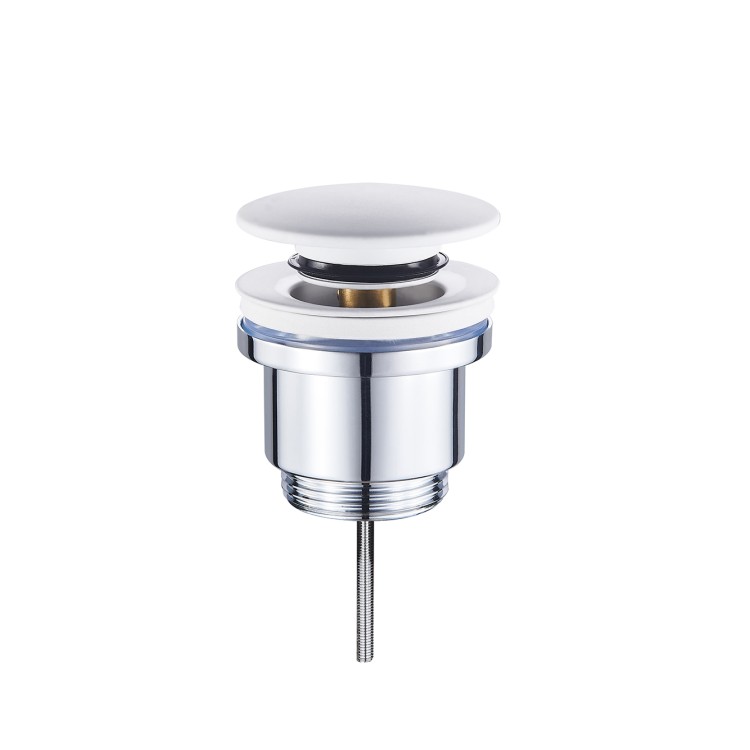 Die universelle Ablaufgarnitur mit Klick-Klack-Funktion und Schraubverschluss in mattem Weiß ist die ideale Ergänzung für moderne Waschbecken.