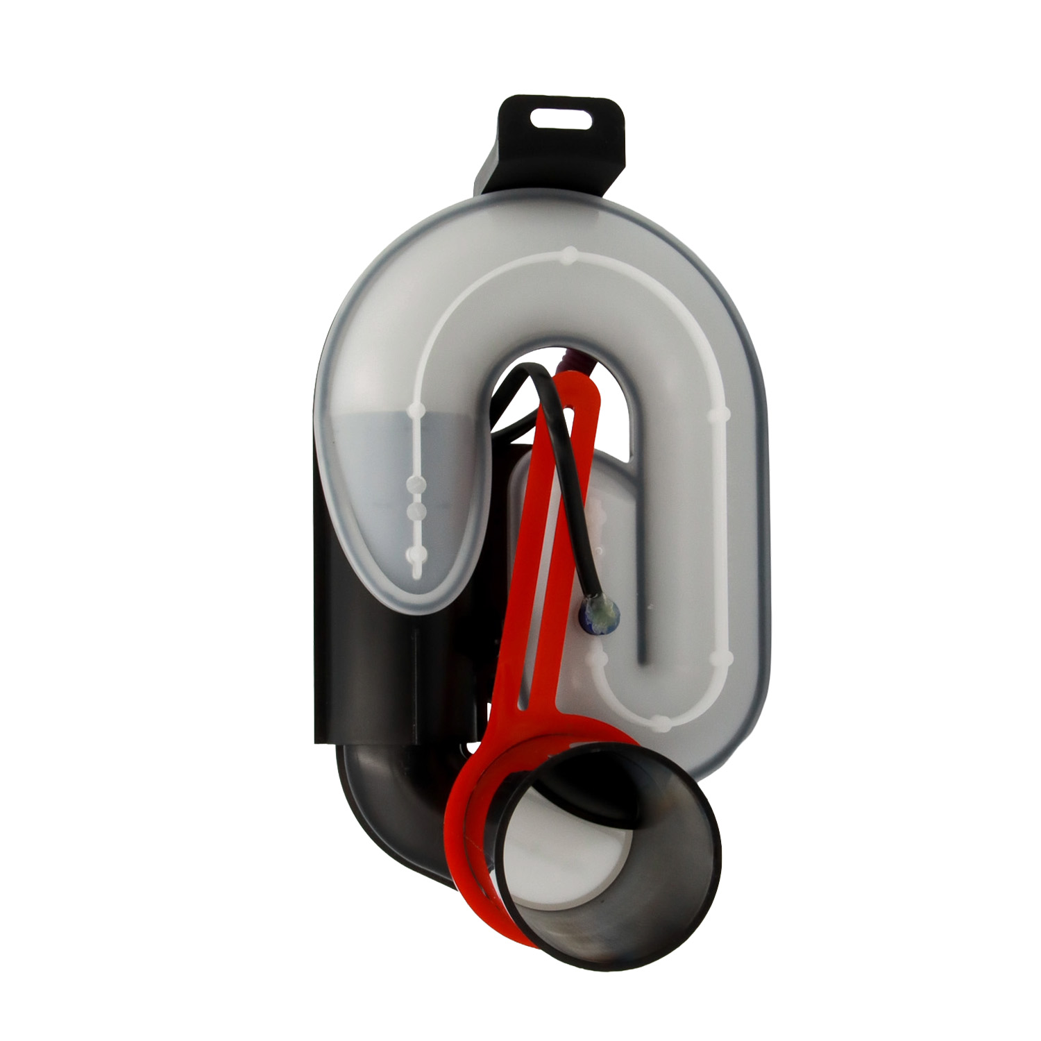 Der robuste Grundkörper überzeugt durch sehr gute chemische Beständigkeit, während die EPDM‑Dichtungen nach DIN EN 681‑1 für Langlebigkeit und Zuverlässigkeit sorgen. Zusätzlich ist eine Sensorhalterung integriert, inklusive wasserdichtem IP68‑Sensor für die elektronische Spülauslösung.