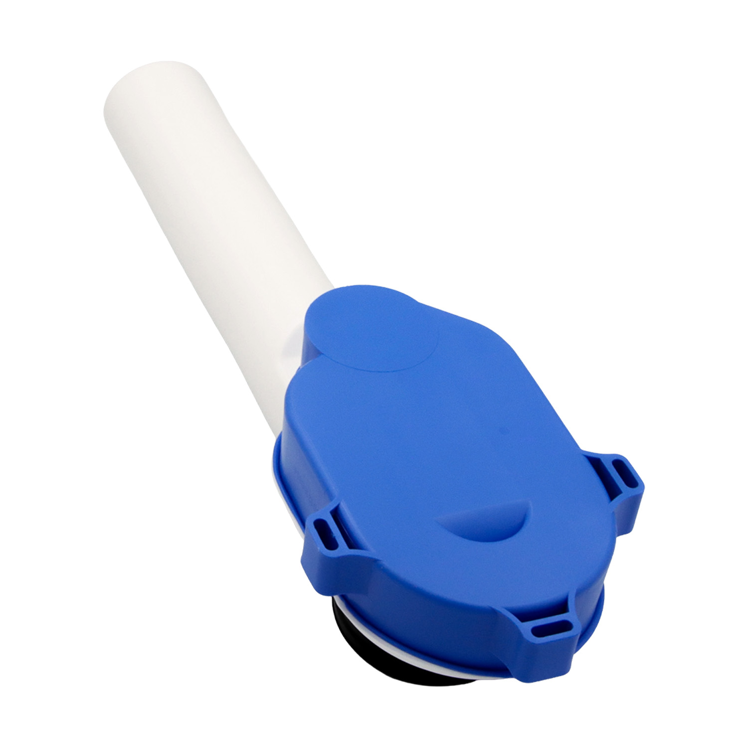 Komplett montierter Siphon aus PE mit Gummi-Dichtung für senkrechten Ablauf. Vorbereitet für Spülsensoren und mit 310 mm Bauhöhe für flexible Montage.