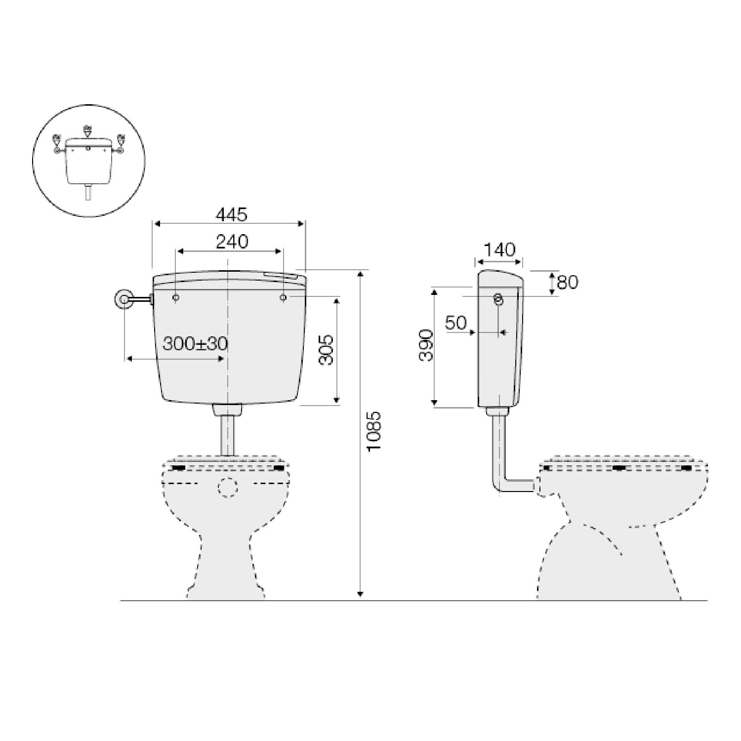 - Spülkasten Maße: H 390 x B 445 x T 140 mm