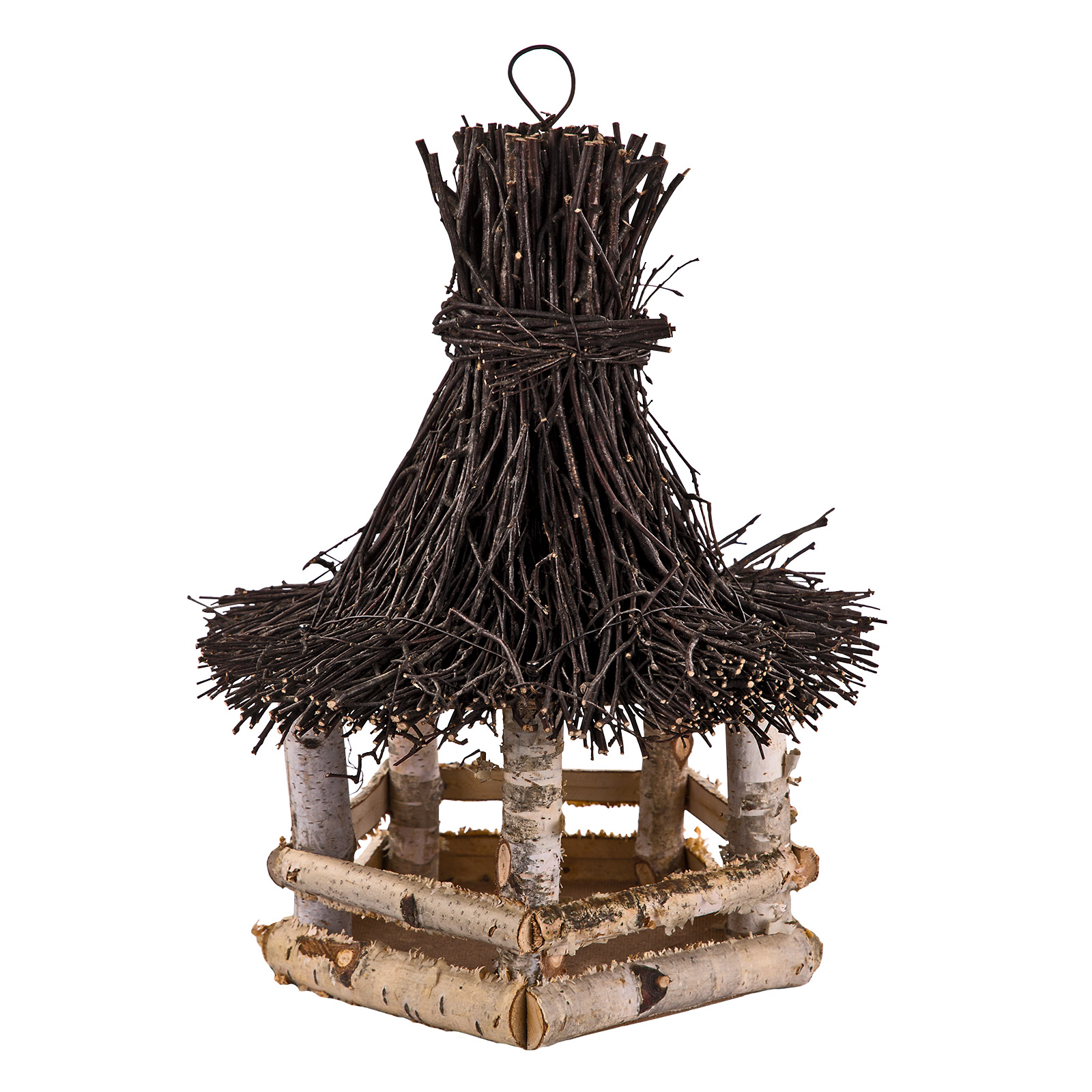 Das DEMA Vogelhaus Fink ist ein Holzhäuschen mit den Maßen 30x30x40cm, das als Futterstelle für Vögel im Sommer und Winter dient. Das 6-eckige Haus besteht aus natürlichen Materialien wie Holzfaserplatten und unbehandeltem Holz, mit Ausnahme der Unterdach-Regenfolie. Mit seinem Strohdach und den liebevollen Details wird es zum Blickfang in Ihrem Garten und bietet eine sichere und trockene Futterstelle für unsere gefiederten Freunde. Es verfügt über einen Haken zum einfachen Aufhängen und bietet viel Vergnügen beim Beobachten des bunten Treibens der Vögel um den besten Fressplatz, besonders für Kinder.