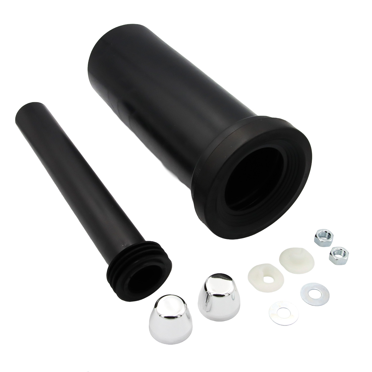 - • Spülrohrverbinder 45 x 300 mm mit Gummilippendichtung • WC Anschlussstutzen 300 mm mit Gummistülpdichtung • Inklusive Abdeckkappen, Exzenterscheiben, Unterlegscheiben, Muttern M12 und Montageanleitung • Anschlussstutzen aus Polyethylen PE-HD, verschweißbar • Dichtungen aus EPDM, alterungs- und witterungsbeständig nach DIN EN 681-1 • DN110/110 Deckkappen Metalloptik, Einschubhöhe 260 mm • Geprüft nach DIN 1389