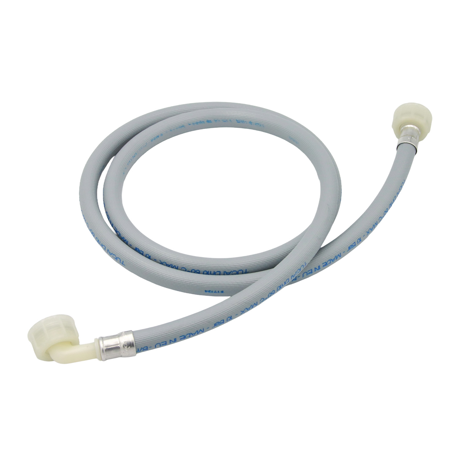 Der Schlauch besteht aus verstärktem PVC und bietet dadurch eine hohe Druckbeständigkeit. Er ist für den dauerhaften Einsatz in der Wasserversorgung von Waschmaschinen konzipiert und entspricht der Norm UNE EN 61770.