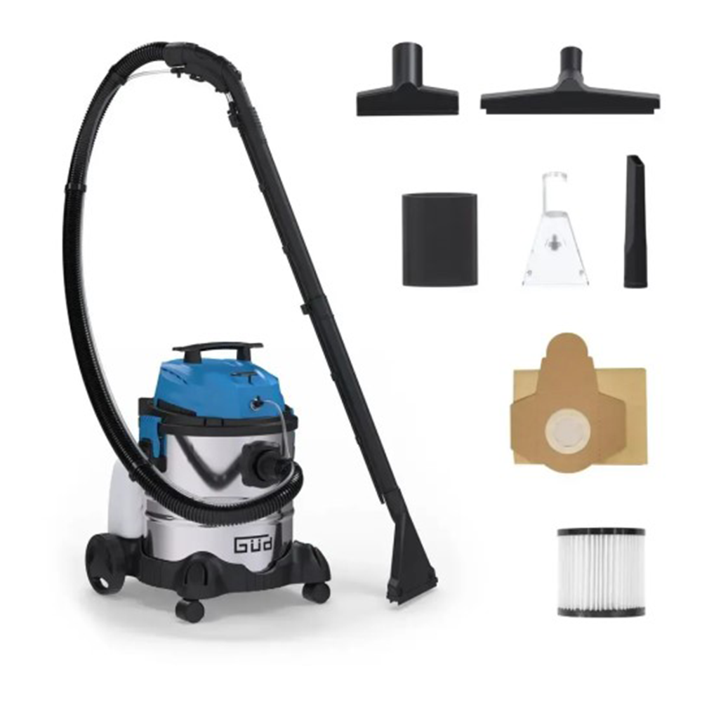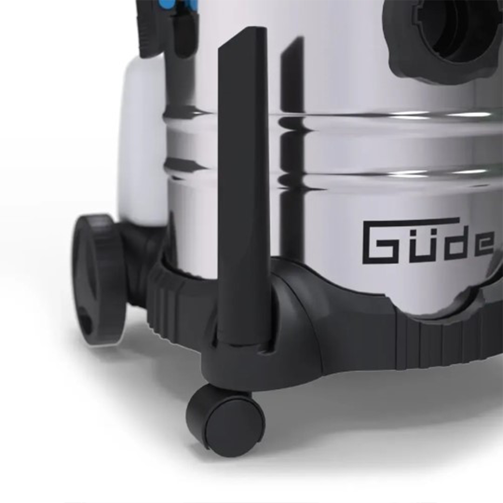 Der robuste 20 Liter Edelstahlbehälter ermöglicht längere Arbeitseinsätze ohne ständiges Entleeren, während der separate 5 Liter Wassertank ausreichend Kapazität für gründliche Nassreinigungen bietet. Das dreiteilige Saugrohr aus stabilem Kunststoff sorgt für komfortables Arbeiten und vielseitige Einsatzmöglichkeiten. Dank integrierter Zubehöraufnahme bleibt alles ordentlich verstaut und jederzeit griffbereit. Lenkrollen gewährleisten eine hohe Mobilität und einen stabilen Stand während der Reinigung. Mit dem 5 Meter langen Anschlusskabel genießen Sie zudem eine große Reichweite für flexibles Arbeiten.