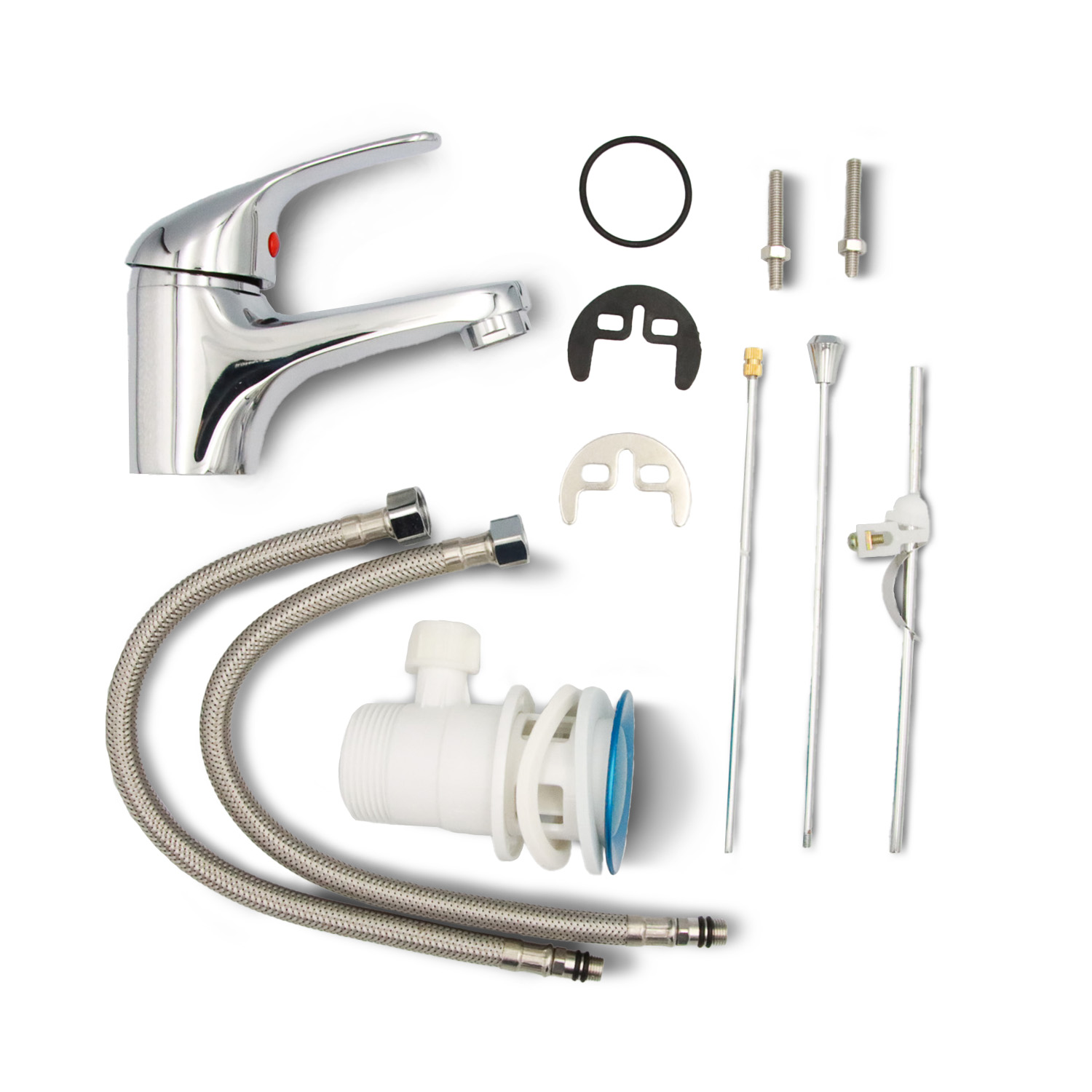 Waschtisch Einhandarmatur mit Ablaufgarnitur Chrom "Kant"