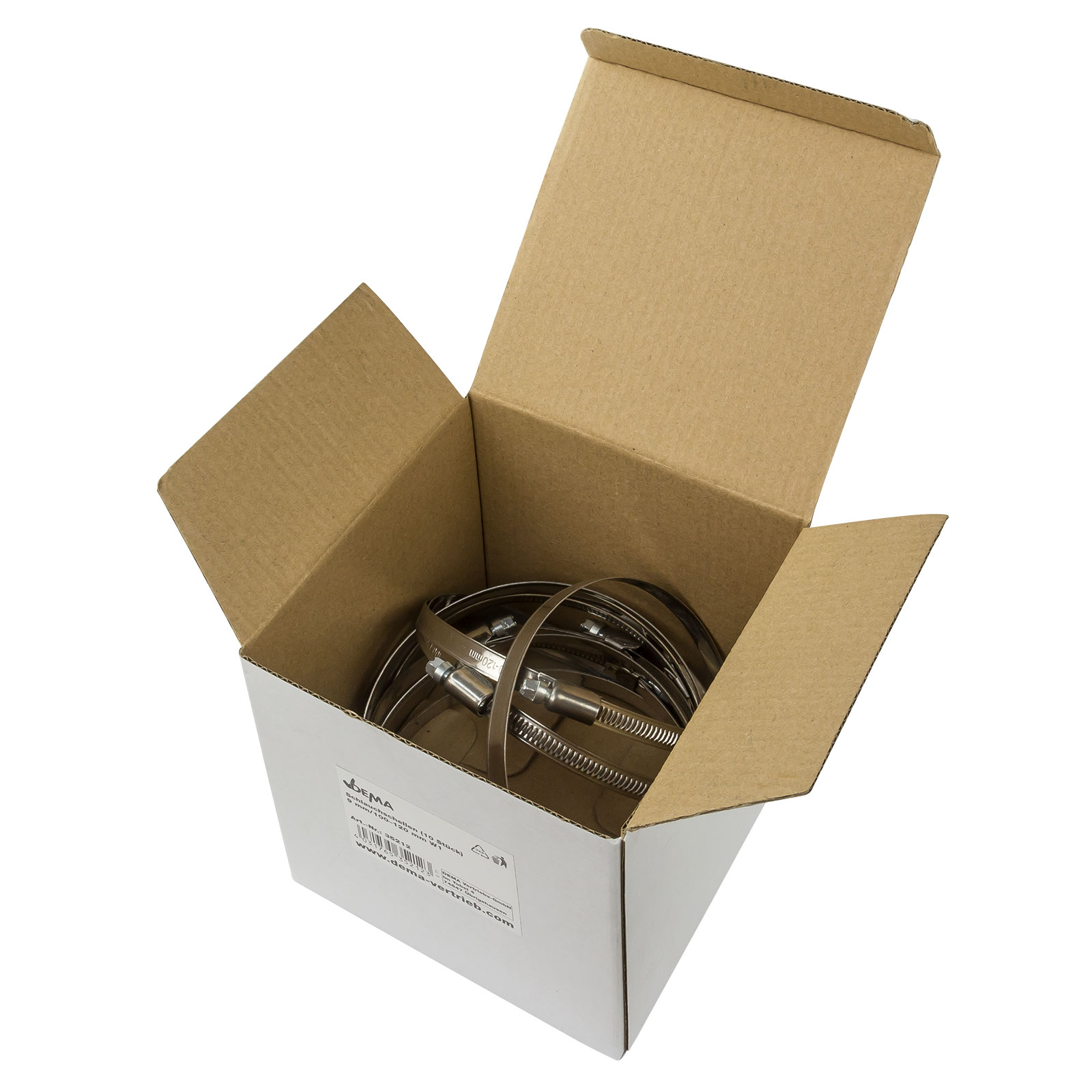 HochwertigW4 (Edelstahl V2A - Ausführung)Geprägtes Band für hohe KraftübertragungSichere und schlauchschonende Band-Innenseite in Verbindung mit hochgebördelten Band-AußenkantenKreuzschlitz- und Sechskantaufnahme für schnelles Ausrichten und AnziehenSpannbereich eingestanzt (beugt Verwechselungen vor)Praktische, handwerkergerechte Entnahmebox
