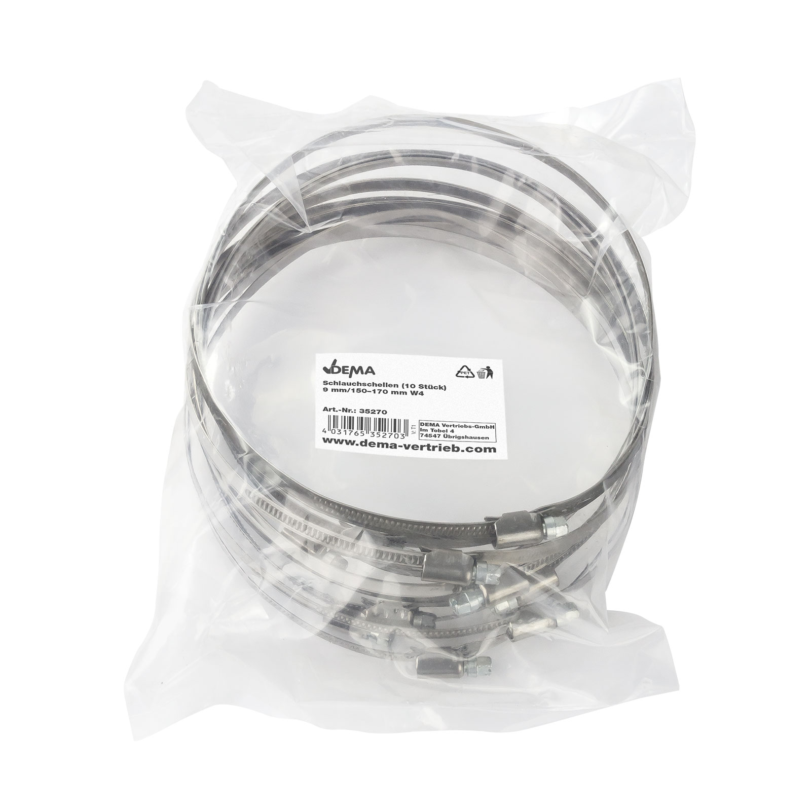 Original DEMA Schlauchschellen 9mm/150-170mm W4 - wenn's halten soll!Stabile Ausführung mit Schneckengetriebe, hochgebördelten Außenkanten und geprägtem Band. Ideal als Mehrbereichs-Schlauchschelle in Industrie, Handwerk, Montage, Sanitär usw. einsetzbar.