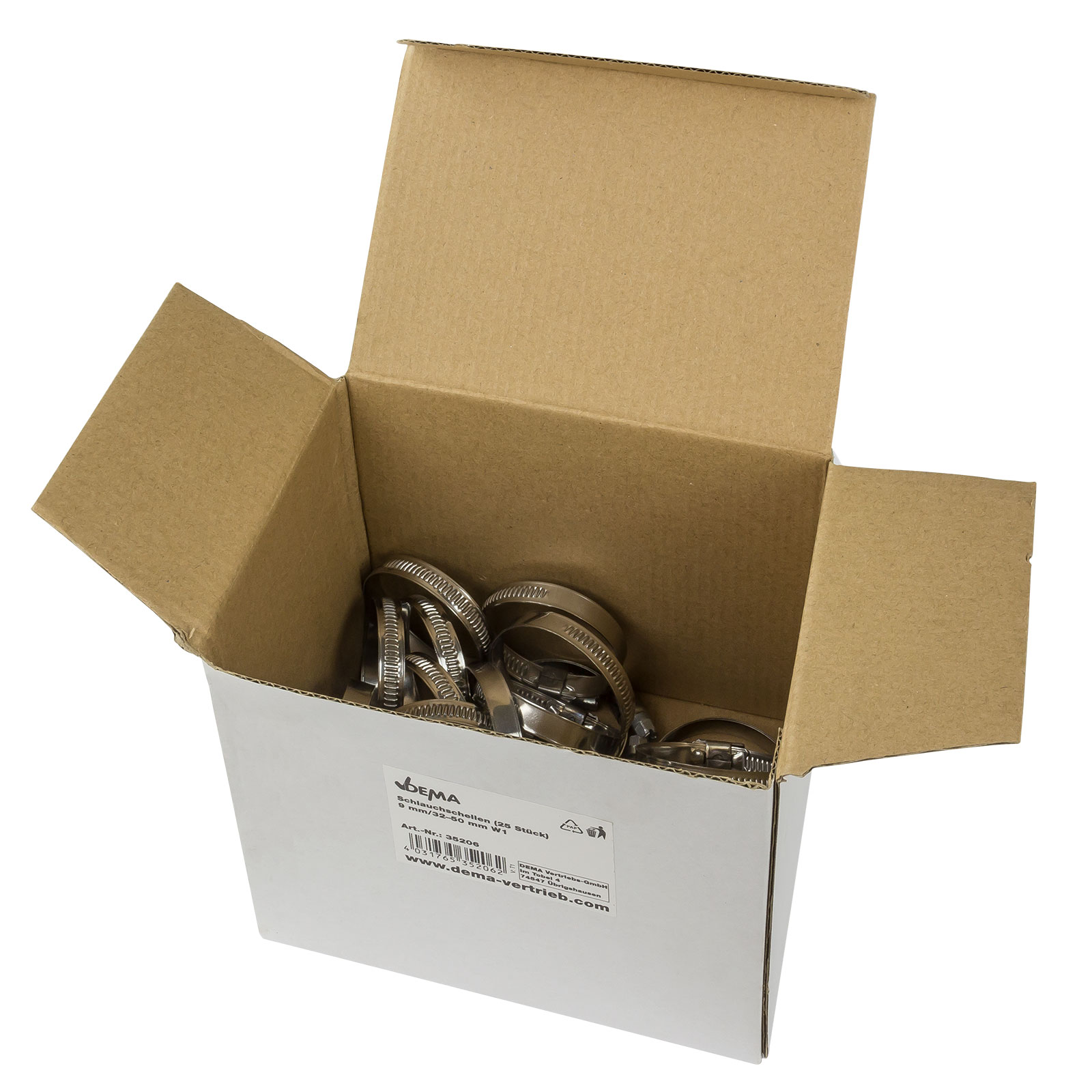 Original DEMA Schlauchschellen 9mm/32-50mm W1 - wenn's halten soll!Stabile Ausführung mit Schneckengetriebe, hochgebördelten Außenkanten und geprägtem Band. Ideal als Mehrbereichs-Schlauchschelle in Industrie, Handwerk, Montage, Sanitär usw. einsetzbar.