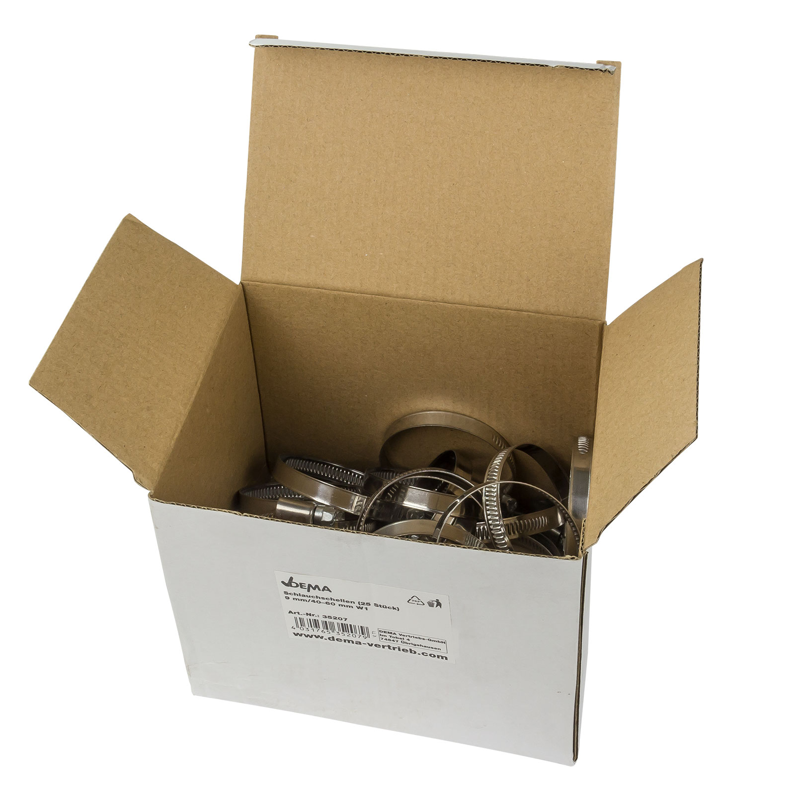 Original DEMA Schlauchschellen 9mm/40-60mm W1 - wenn's halten soll!Stabile Ausführung mit Schneckengetriebe, hochgebördelten Außenkanten und geprägtem Band. Ideal als Mehrbereichs-Schlauchschelle in Industrie, Handwerk, Montage, Sanitär usw. einsetzbar.