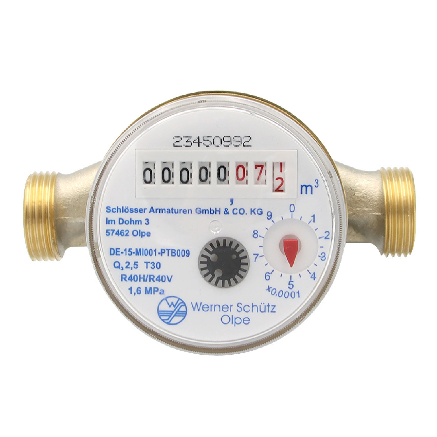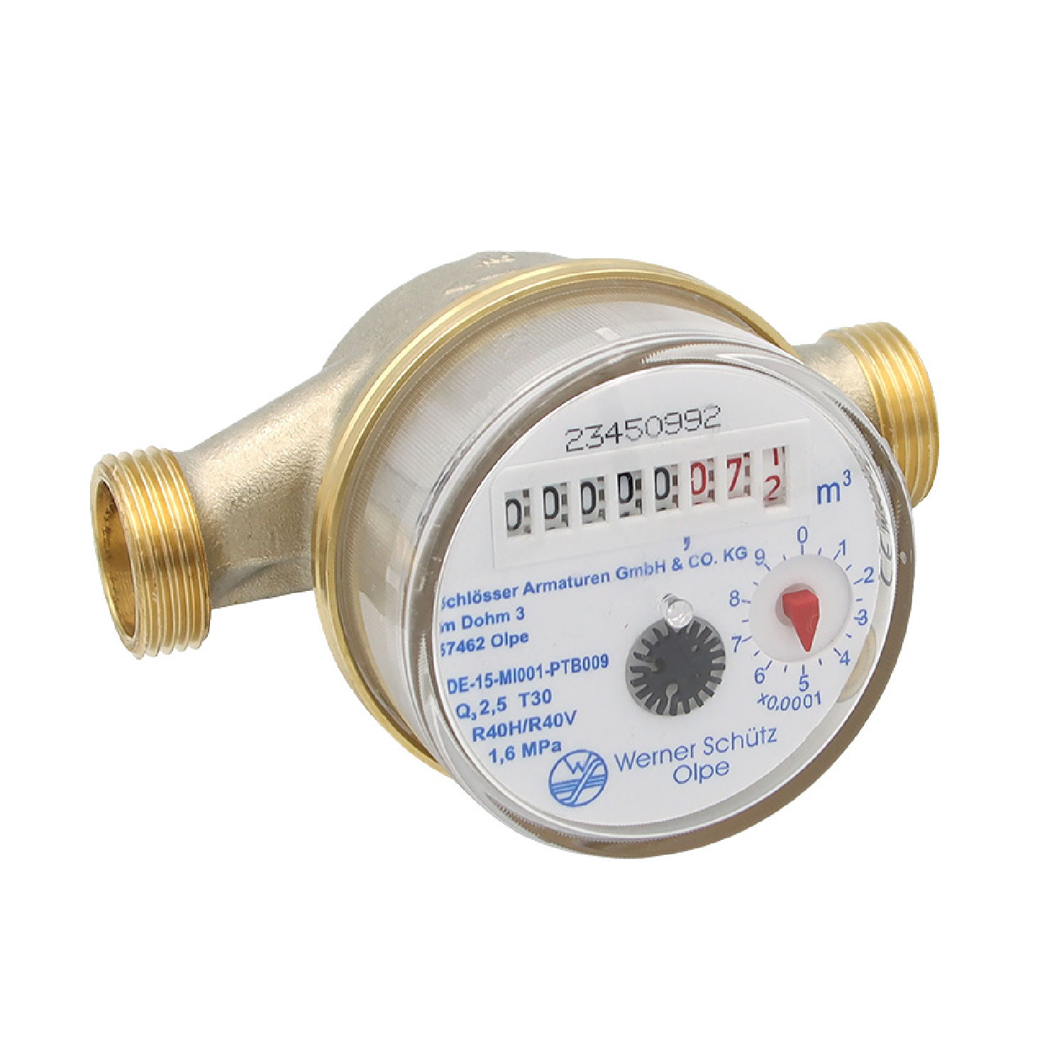 Wohnungswasserzähler 1/2" (3/4" AG) x 110 mm - Qn 2,5 m3/h - kalt